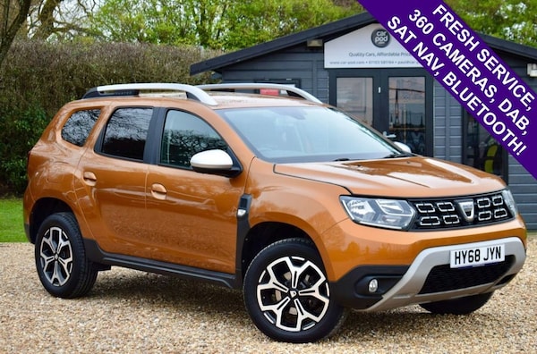 Welcome to Car-Pod and our advert for this Desert Orange Dacia Duster 1.6 Prestige SUV which joins us with Service Records (Services at 4k, 7k, 13k, 18k, 24k, 49k miles) and an MOT until 6th September 2026. This car is Loaded with features including 360 Cameras, Rear Parking Sensors, Sat Nav, DAB Radio, Bluetooth, Cruise Control, Automatic Headlights, 17in Alloys, Spare Wheel and 2 Remote Keys. Call now to book your personal viewing, alternatively scan the QR Code for a walk around video of this car! Highly competitive finance available with £0 deposit, call us for an instant quote. Credit & Debit Cards Accepted. Maximum £250 Credit Card Payment accepted. We deliver nationwide upon request. For more info, photos, videos or to arrange a viewing, please call us on or visit . We are proud winners of the Highly Commended Award for Car Retailer Customer Service Excellence, presented to us at the Auto Industry Excellence Awards 2020..17in Alloy Wheels - Diamond-Cut, 3-Seat Rear Bench, 7in Touchscreen Navigation System Plus DAB Radio, ABS - Anti-lock Braking System, Airbag - Front and Lateral, Analogue Dashboard, ASR - Traction Control with ESC - Electronic Stability Control, Auto Air-Conditioning, Automatic High Low Beam, Blind Spot Warning, Bluetooth Connectivity, Booster Emergency Braking, Cruise Control, Dark Metal Add-On On The Bumper Part, Dark Metal Roof Bars, Daylight - Nightlight Rearview Mirror, Desert Orange, Door Mirrors - Body Coloured, Door Mirrors - Heated and Electrically Adjustable, Driver Seat Lumbar Adjustment, DRL - Daytime Running Lights, ECO Mode, Electric Windows - Front, Electric Windows - Rear, Exhaust Tailpipe - Chrome Finish, Extra Tinted Windows, Folding Rear Seats, Front and Rear Seat Belts with Pyrotechnic Pretensioners, Front Fog Lights, Full LED Headlamps, Hands-free key card, Headrests - Rear Height Adjustable x3, Heated Rear Window, Height Adjustable Steering Column and Depth Adjustment, Height Adjustment Passenger Seat, Height-Adjustable Drivers Seat, Height-Adjustable with Armrest and Lumber Adjustment, Indicators with Side Repeaters, Multi View Camera Plus Sensors, On-board Computer, Power Assisted Steering, Rear Storage, Seat Belt Warning, Seats with ISOFIX System, Spare Wheel, Steering Wheel - Leather, Tyre Pressure Monitor, Under Passenger Seat Storage