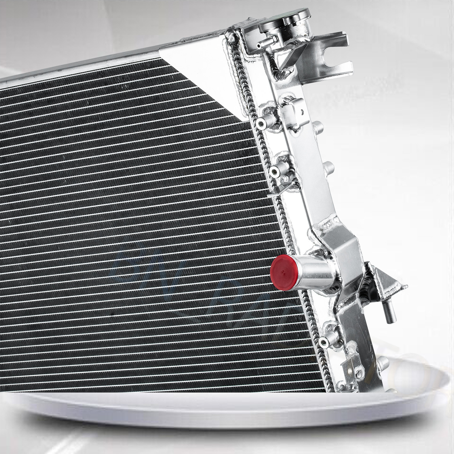 This aluminum radiator is designed to provide maximum cooling efficiency to prevent premature engine failure. Its light-weight, and high-heat transferring aluminum features a tube and fin design that, dramatically increases surface area that enables the heat to dissipate more efficiently. This Aluminum Radiator is at least 40% more efficient than stock ones. Most importantly, it has a much higher capacity for coolant than stock ones, which means that your cooling system will be more efficient and will be more resistant to temperature surges in racing applications.