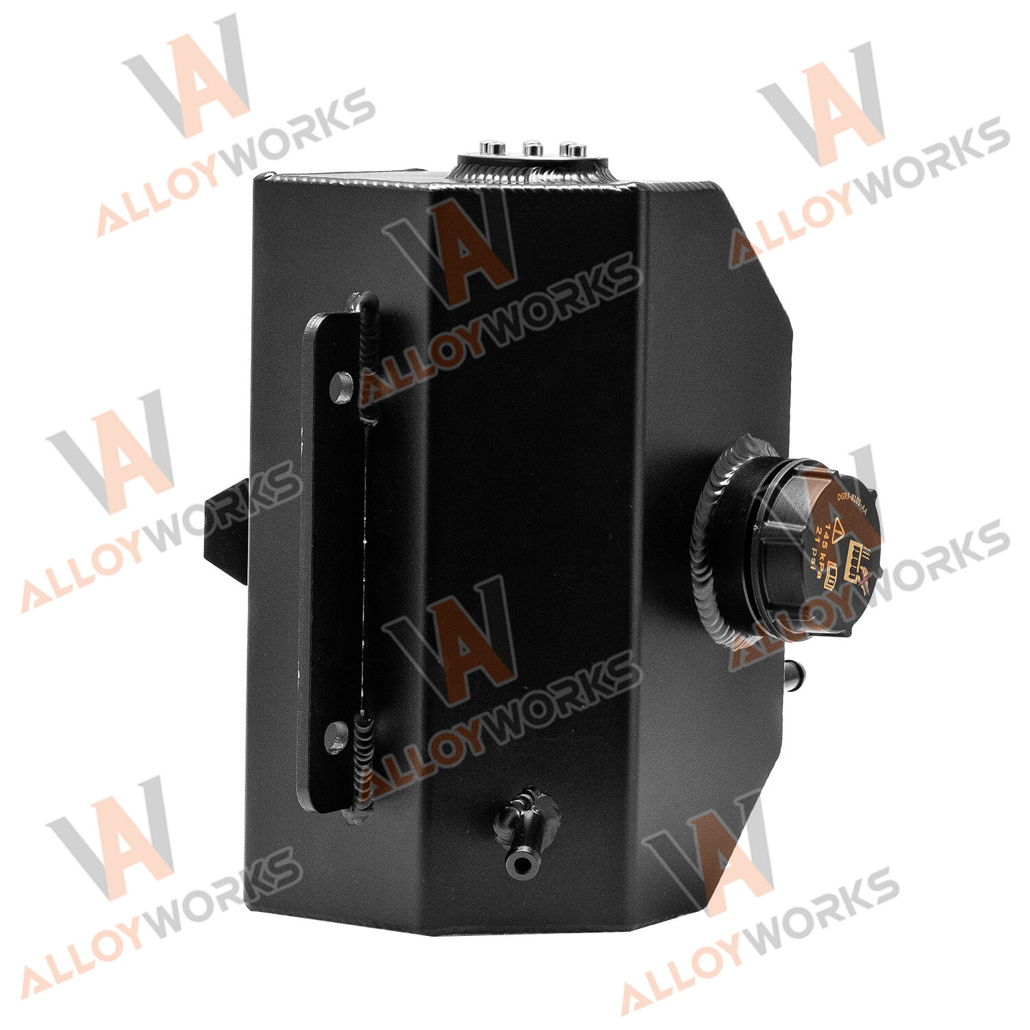 These Racing coolant expansion fill tanks are built with .11 in. thick aluminum. They have billet aluminum necks and accept the OEM radiator cap. Expansion tanks provide an air space for the coolant to expand into and are required in all applications where the top of the radiator is lower than the top of the engine. This overflow tank is a direct replacement for the OEM one but upgraded for durability over the factory plastic model. Reuses all original hoses and clamps.