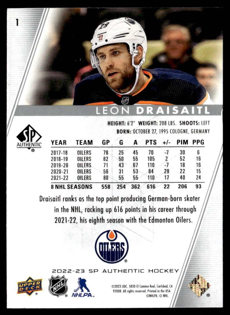 | LEON DRAISAITL 2022-23 SP AUTHENTIC EDMONTON OILERS #1 | ||||||||||||||||