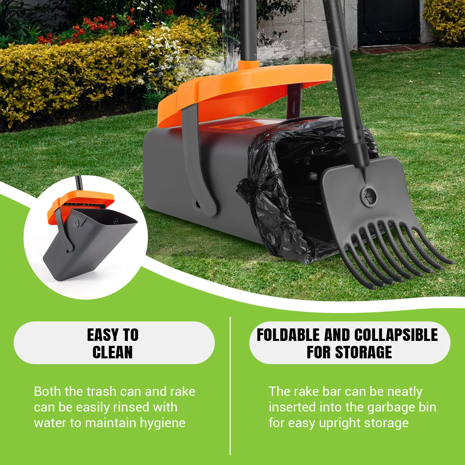【Easy to Clean and Store】: Both the dustpan and the rake can be easily rinsed with water to keep them clean. When not in use, the rake handle can be conveniently attached to the dustpan for upright storage, saving space and making it easier to access.