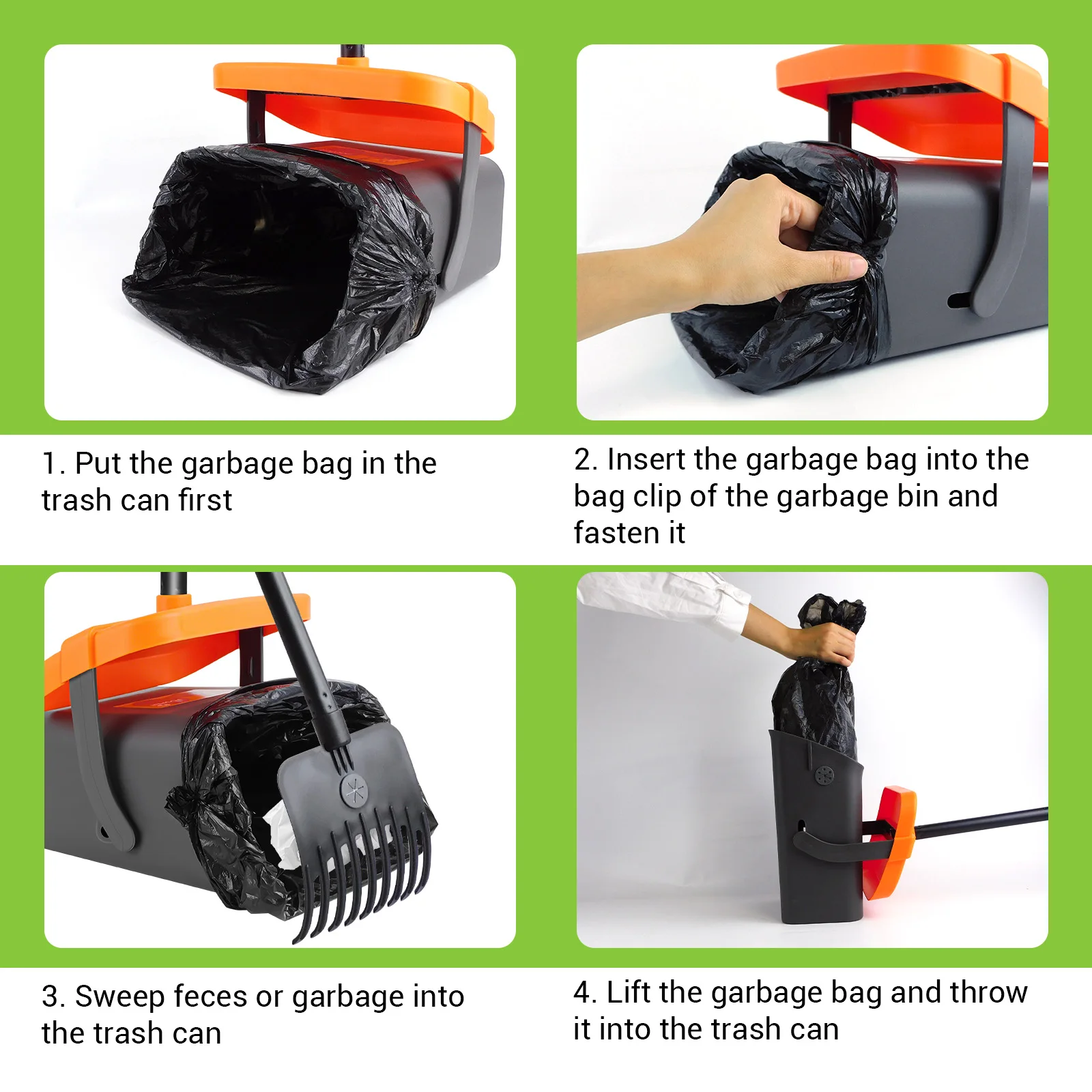 【Garbage Bag Clip】: The specially designed garbage bag clip is compatible with most standard garbage bags on the market, ensuring that the bag is securely attached to the chicken manure scoop and preventing it from slipping. The garbage bag clip ensures a smoother scooping process without the inconvenience of accidentally detaching the bag.