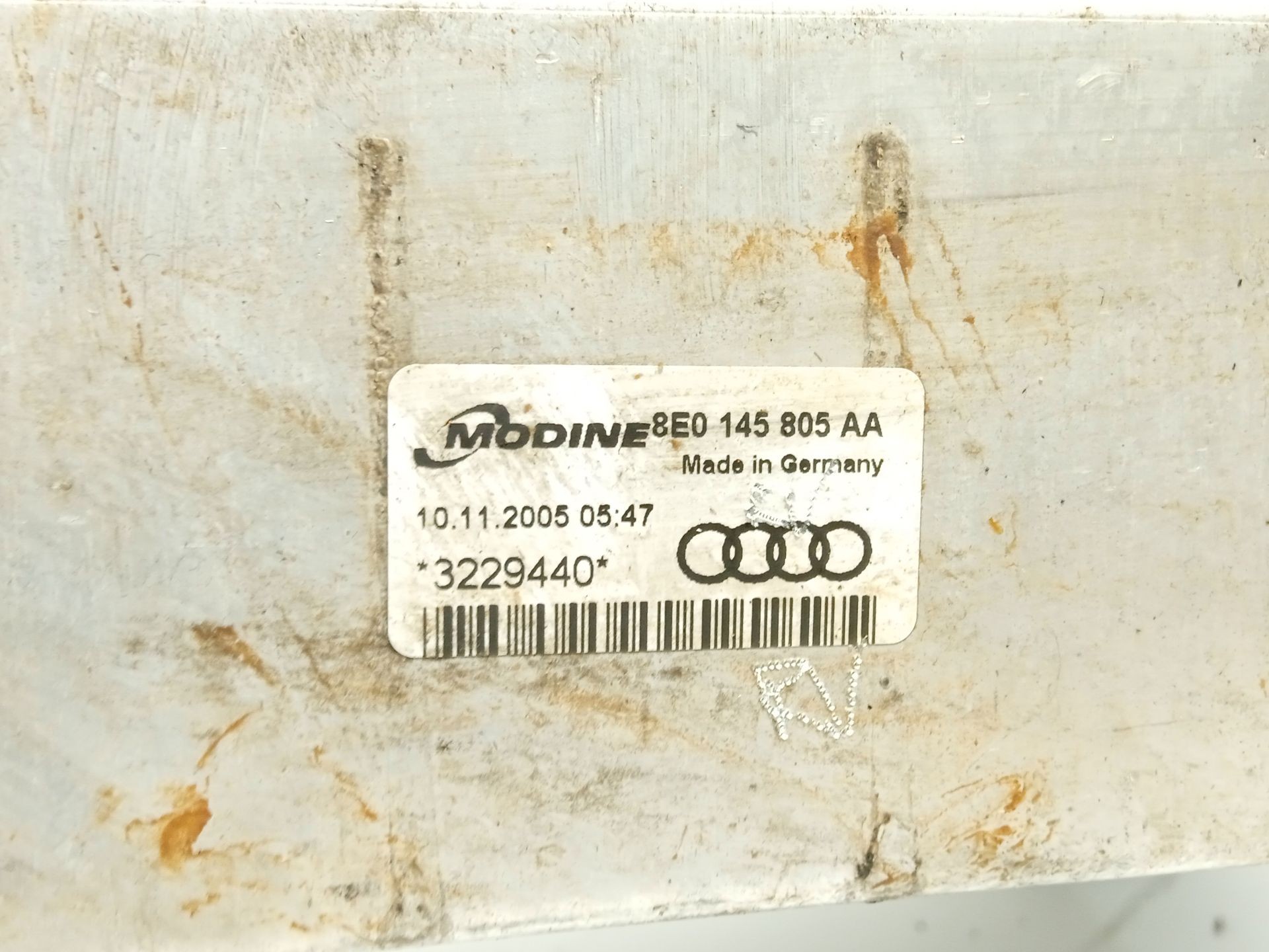 il rimpiazzo INTERCOOLER funziona per auto di marca AUDI e modello A4 B7 8EC. Il quartinamento INTERCOOLER viene da un'auto dell'anno 2005. Il colore del veicolo da cui è stata rimossa la parte INTERCOOLER es Marron.