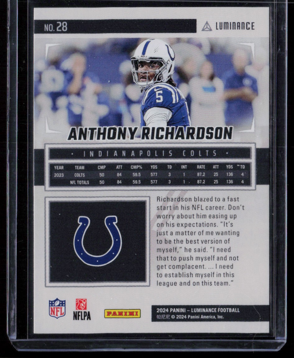 | ANTHONY RICHARDSON 2024 PANINI LUMINANCE INDIANAPOLIS COLTS #28 | ||||||||||||||||