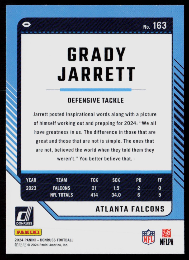 | GRADY JARRETT 2024 DONRUSS FOOTBALL ATLANTA FALCONS #163 | ||||||||||||||||