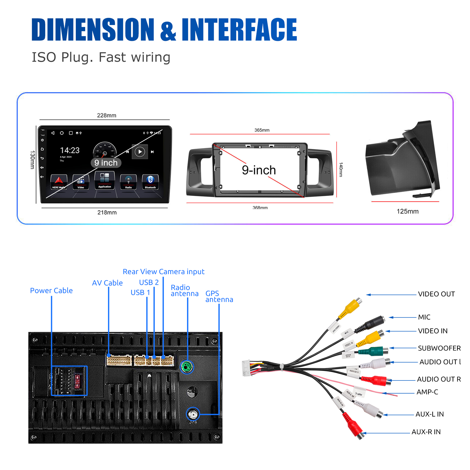 RDS/FM Radio & Bluetooth & ASP Sound Setting: Supports Bluetooth 4.1, with built-in microphone so you can make hands-free calls while driving. Support access to phone book, music playback interface, etc. RDS supported. You can save 18 FM radio stations. Built-in ASP chip. Supports 32-band EQ setting, which can be adjusted according to your personal preference. Which is very similar to your original sound. 4 x 45W amplifier, surround sound and subwoofer output