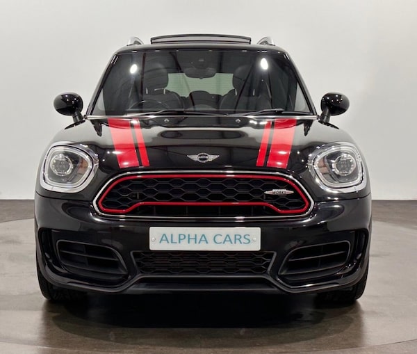 This 2018 MINI Countryman John Cooper Works boasts a clear vehicle history, offering you peace of mind. This particular model is equipped with a powerful 2.0 litre petrol engine and a four wheel drive drivetrain, ensuring excellent performance and control in all conditions. As a Euro 6 compliant vehicle, it meets modern emission standards. Experience exhilarating performance with this John Cooper Works Countryman, capable of accelerating from 0 to 60 miles per hour in just 6.5 seconds. This impressive acceleration highlights its sporty nature and superior engineering compared to other vehicles in its class. The John Cooper Works trim level signifies a focus on dynamic driving and a premium experience. Another High Specification John Cooper Works SUV ALL 4 Petrol Euro 6 at Alpha Cars .Electric Slidw Panoramic Glass Roof, Chilli Pack , Mini Head Up Display, Wireless Charge , Rear View Camera , 18in Alloy Wheels - JCW Black Thrill Spoke, 19in Alloy Wheels - John Cooper Works Course Spoke, 3 Point Seatbelts on all Seats, 3rd Brake Light, Air Conditioning - Automatic Dual Zone, Air Conditioning - Manual, Airbags for Driver and Front Passenger, Alarm and Immobiliser - Thatcham CAT 1, Anthracite Headlining, Anti-Lock Braking System - ABS, Bluetooth Hands Free Function with USB Audio, Body Coloured Fuel Filler Cap in Rear Right Side Panel - Linked to Central Locking, Brake Pad Wear Indicator, Brembo 4 Piston Front Brake Callipers with 350mm Brake Discs, Child Seat ISOFIX Attachment, CHILI Pack, Chrome Bezels around Rear Lights and Headlights, Colour Line - Carbon Black, Comfort Access System, Condition Based Service, Crash Sensor, Cross Punch Leather - Carbon Black - Carbon Black, Cruise Control with Brake Function, Cupholders - Two in Front, DAB Tuner, Darkened Rear Glass, Daytime Driving Lights, Decorative Rings Surrounding Round Instruments in Chrome Plated, Door Handles - Chrome Plated, Door Handles - Interior - Chrome Plated, Door Sill Finishers - Metal Look and Model Dependent Lettering, DTC - Dynamic Traction Control with EDLC - Electronic Differential Lock Control, Dynamic Brake Lights and 3rd Brake Light in LED Technology in Roof Spoiler, Dynamic Stability Control - DSC, Electronic Parking Brake, Embellisher at Bottom Edge of All Windows - Chrome Plated, Engine Scoop in Body Colour, Enhanced Bluetooth with Wireless Charging, Exhaust Tailpipe - Visible - Twin - Round - Mounted in Left and Right with Chrome Finisher, Exterior Mirrors - Aspheric on Drivers Side - Electrically Adjustable, External Visible VIN, Floor Mats, Foldable Rear Backrest 40:20:40, Follow Me Home Function, Front Centre Armrest, Front Passenger ISOFIX and Airbag De-Activation Switch, Fuel Pump Automatic Cut-Off in Crash Situation, Gearshift-Selector Lever and Handrake Lever Gaiters in Sensatec, Harman Kardon Hi-Fi System, Headlight - Beam-Throw Control Electrical with Manual Adjustment, Headrests For All Seats - Manually Adjustable, Heated Front Windscreen, Heated Front Windscreen Washer Jets, Heated Rear Window with Automatic Deactivation, Heater with Mechanical Control and Recirculating-Air Button, Intelligent Emergency Calling - E-Call, Interior Light Pack, Interior Lights - Integrated into Centre Front Headliner and Centre Light in Headlining, Interior Mirror -