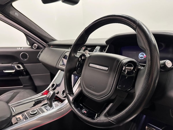 This 2019 Land Rover Range Rover Sport P575 V8 SVR boasts exceptionally low mileage for its age, having covered just 42,214 miles. This impressive example features a powerful 5.0 litre petrol engine and a Four Wheel Drive drivetrain, meeting Euro 6 emission standards. It offers a substantial towing weight of 3000 kg. Inside, youll find a host of premium features including Keyless Entry, Bluetooth Connectivity, and a Meridian Surround Sound System delivering 825W of audio. For effortless manoeuvring, it is equipped with a 360 Degree Parking Aid and Adaptive Cruise Control with Stop and Go functionality. The performance of this Range Rover Sport SVR is truly remarkable, accelerating from 0 to 60mph in a mere 4.3 seconds. This rapid acceleration demonstrates its superior capability compared to many other vehicles in its class. The combination of its potent V8 engine, sophisticated all wheel drive system, and advanced driver aids ensures a driving experience that is both exhilarating and reassuring, making it a standout choice for those seeking performance and luxury..22" Alloy Wheels , 360 Surround Camera , 12V Power Socket, 21in Alloy Wheels - 5 Split Spoke Style 5091 with Satin Polish Finish, 22in Alloy Wheels - 5 Split Spoke Style 5083 with Gloss Black Finish, 360 Degree Parking Aid, 360 Degree Surround Camera System, 60-40 Folding Rear Seats, ABS - Anti Lock Braking System, Active Exhaust Control, Adaptive Cruise Control with Stop and Go, Adaptive Dynamics, All Terrain lnfo Centre, Aluminium Gearshift Paddles, ATPC - All Terrain Progress Control, Auto-Dimming Interior Mirror, Auto-Dimming Power Fold - Heated Door Mirrors with Memory and Approach Lights, Automatic Headlights, Blind Spot Monitor, Bluetooth Connectivity, Body Coloured Carbon Fibre Bonnet, Body Coloured Door Handles, Body Coloured Lower Door Claddings, Body Coloured Side Sills and Bumper Corners, Bonnet Vent Frame - Gloss Black, Brake Pre-fill, Bright Metal Pedals, CBC - Cornering Brake Control, Centre Armrest with Cubby Box, Clear Exit Monitor, Configurable Dynamics, Configurable Interior Mood Lighting, Contrast Painted Roof - Narvik Black, Customer Configurable Autolock, Customer Configurable Single Point Entry, DAB - Digital Audio Broadcast, Driver and Passenger Airbags, Driver Condition Monitor, DSC - Dynamic Stability Control, EBA - Emergency Brake Assist, EBD - Electronic Brake-Force Distribution, Electric Windows with One-Touch Open-Close and Anti-Trap, Electrically Adjustable Steering Column, Electronic Active Differential with Torque Vectoring by Braking, Emergency Braking, EPAS - Electronic Power Assisted Steering, EPB - Electronic Park Brake, Estoril Blue, ETC - Electronic Traction Control, Extended Leather Upgrade, Extended Satin Brushed Aluminium Trim Finisher, Follow Me Home Lighting, Four-Zone Climate Control, Front and Rear Cupholders, Front and Rear Grab Handles, Front and Rear Recovery Eyes, Front Bumper - Body Coloured, Front Bumper Corners - Body Coloured, Front Bumper Frame - Narvik Black, Front Bumper Mesh - Gloss Black, Front Bumper Outer Fin - Body Coloured, Front Centre Console Refrigerator Compartment, Front Door Storage Space, Front Grille Frame - Narvik Black, Front Grille Inner Surround - Narvik Black, Front Grille Mesh Edging - Gloss Black, Glovebox - Lockable, Gradient Acceleration Control - GAC, Gradient Release Control, Grille Mesh - Gloss Black, HDC - Hill Descent Control, Heated Front and Rear Seats, Heated Rear Window, Heated Steering Wheel, Heated Windscreen with Heated Washer Jets, High Speed Emergency Braking