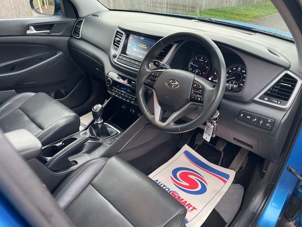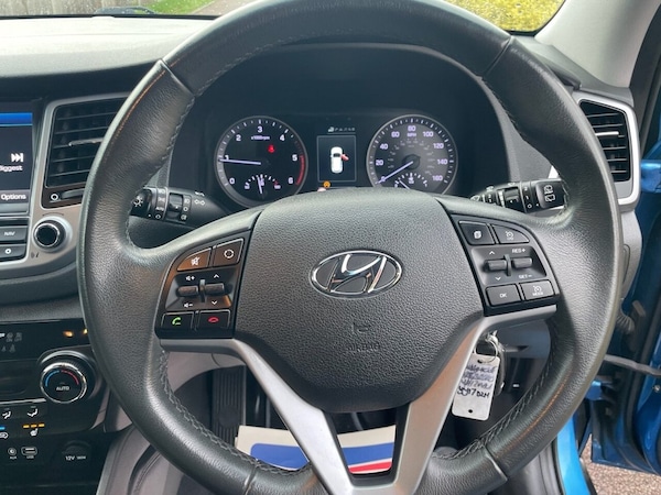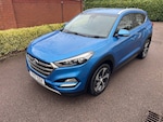 We are delighted to offer for sale this Hyundai Tucson 2L CRDI Premium Blue Drive 2WD in blue. We have recently purchased this from the previous keeper. It comes with 2 x keys, MOT and service history. Extras include climate control, heated leather seats front and rear, sat nav, cruise control, rearview camera, parking sensors and touchscreen. It is in exceptional condition, first to see will buy! It also comes with a 3 months/3,000 miles warranty. We welcome AA or RAC inspections and also part exchanges, call us for a price on your vehicle, we give very fair prices. If you would like to arrange a test drive or a live video, please contact Tracey on and she will be more than happy to assist you with your requirements. Delivery can be arranged. *** CHECK OUT OUR REVIEWS AND BUY WITH ADDED CONFIDENCE*** Please check out our website, for other cars which we have in stock. .Ara Blue, USB and AUX Connections, Stereo RDS DAB Digital Radio with MP3 Co, 8in Touchscreen Satellite Navigation wit, Door Mirrors - Electric Adjustment and H, 12V Power Outlet - Front Console and Luggage Compartment, 19in Alloy Wheels, 6 Airbags - Front - Front Seat Side and Curtain, 6 Speakers - 2 Tweeters - 2 Front Door - 2 Rear Door, 8in Touchscreen Satellite Navigation with Traffic Messaging Channel - Reversing Camera - Mapcare and Tom Tom LIVE Services, ABS - Anti-Lock Brake System with EBD - Electronic Brake-Force Distribution, Active Bonnet System, Adjustable Head Restraints, Adjustable Intermittent Front Windscreen Wipers with Aero Wiper Blade, Armrest - Front with Storage, Armrest - Rear Centre with Cup Holders, Automatic De-Fog System for Front Windscreen, Automatic Dimming Rear View Mirror with Compass, Automatic Headlights with Dusk Sensor, Automatic Windscreen Wipers with Rain Sensor, Autonomous Emergency Brake, BAS - Brake Assist System, Blind Spot Monitor, Bluetooth Connectivity, Body Colour Bumpers, Bottle Holders - Front Centre Console and Door, Childproof Rear Door Locks, Chrome Effect Beltline Moulding, Climate Control - Dual Zone with Ioniser, Courtesy Light - Front Door, Cruise Control with Speed Limiter, Curtain Airbag Rollover Sensor, DBC - Downhill Brake Control, Daytime Running Lights - LED, Deadlocks, Digital Clock, Door Mirrors - Body Coloured, Door Mirrors - Electric Adjustment and Heated with Power Folding Function and Puddle Lamps, Driver Seat Height Adjustment, Drivers and Passengers Seat Electric Adjustment, ESP - Electronic Stability Programme, ESS - Emergency Stop Signal, Electric Windows - Front and Rear with Drivers Anti-Trap and One-Touch Up-Down Control, Exterior Door Handles - Body Coloured, Flex Steering, Front Fog Lights, Front Map Reading Lights, Front Passenger Airbag De-Activation Switch, Front Windscreen Wiper De-Icer, Glove Compartment with Cooling Function and Illumination, HAC - Hill-Start Assist Control, Headlights - Follow Me Home Function, Heated Front Seats, Heated Rear Seats, Height Adjustable Front Seatbelts, ISOFIX Child Seat Anchorage Points - Rear - Outer Rear, Immobiliser, Interior Door Handles - Chrome Effect, Interior Light - Luggage Compartment, Interior Trim - Soft Touch - Door Top and Centre Trim, Lane Departure Warning System with Lane Keeping Assist, Leather Effect Drivers Knee Bolster, Leather Wrapped Steering Wheel and Gear Knob, Locking Wheel Nuts, Luggage Hooks, Luggage Net, Parking Sen