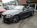 HERE WE HAVE A STUNNING 2020 2 OWNER BMW 220I M SPORT CONVERTIBLE AUTOMATIC IN METALLIC GREY. THE CAR COMES WITH ALL HANDBOOKS-SERVICE HISTORY-HPI CLEAR-2 KEYS !! GREAT FUN CAR WITH A GOOD SPEC AND SOLID BUILD QUALITY. THE CAR COMES WITH THE WIND DEFLECTOR-DIAMOND CUT ALLOY WHELLS- SAT NAV-ELECTRIC HOOD/WINDOWS/MIRRORS-PARKING SENSORS-PADDLE SHIFTS-CRUISE CONTROL-TRACTION CONTROL-MULTI FUNCTIONAL STEERING WHEEL-BLUETOOTH-MP3-ISOFIX ETC. THE CARS INTERIOR IS A BLACK LEATHER WITH WHITE STITCHING WHICH IS UNMARKED. IT DRIVES REALLY WELL AND ALL TEST DRIVES ARE WELCOME .WE OFFER GREAT FINANCE PACKAGES AND WE ALSO ACCEPT P/EX.THE CAR COMES WITH 1 YAERS FREE AA BREAKDOWN COVER AND A MINIMUM OF 3 MONTHS WARRANTY WITH THE OPTION TO EXTEND..Wind Deflector, 12V Power Socket - Centre Console, 12V Power Socket - Passenger Footwell, 18in Alloy Wheels - M Light Double-Spoke Style 719 M Bicolour Jet Black, Access to BMW Connected Plus for 12 Months from Vehicle Production - Subscription Required, Acoustic Soft-Top in Anthracite, Active Differential Brake - ADB Sport - Electronic Differential Lock in DSC-Off Mode, Air Conditioning - Automatic - Single Zone, Airbags, Alarm System - Thatcham 1 with Remote Control and Engine Immobiliser, Ambient Lighting - Switchable, Armrest - Front with Sliding Adjustment, Automatically Dimming Rear View Mirror, BMW ConnectedDrive Online Services, BMW Emergency Call, BMW Navigation, BMW Professional Radio with Single CD Player - with MP3 Playback Compatibility, BMW TeleServices, Battery Age Recognition Function, Battery Safety Cut Off, Bluetooth Hands-Free Facility with USB Audio Interface and Audio Streaming, Brake Pad Wear Indicator - Front and Rear, Bumper System - Front and Rear, Central Locking Switch - Doors - Fuel Filler Cap - Luggage Compartment, Check Control Warning System for Monitoring of Lights and Door-Luggage Compartment Open Warning, Child Seat ISOFIX Attachment for the Two Outer Rear Seats, Condition Based Service, Crash Sensor, Cup Holders x2 with Inlay Mat, DAB Digital Radio, DSC - Dynamic Stability Control Plus, Darkened Tail Lights with LED Light Bars, Daytime Driving Lights, Direction Indicator - Side Repeaters - Integrated in Exterior Mirrors, Direction Indicator Lights - Clear Lenses, Door Sill Finishers - M Designation, Drive Performance Control - ECO PRO - Comfort - Sport - Sport Plus, Dynamic Brake Lights, EPS - Electric Power Steering, Electric Windows - Front and Rear with Open-Close Fingertip Control - Anti-Trap Facility and Comfort Closing Function, Engine Cover with BMW Roundel and TwinPower Turbo Designation, Exhaust Tailpipe - Chrome - Dual - Round - Left, Exterior Mirrors Electrically Adjustable, Exterior Parts in Body Colour, Exterior Trim - High-Gloss Shadowline, First Aid Kit and Warning Triangle, Floor Mats - Velour, Full Black Panel Display, Glove Box Handle with Chrome Surround and Key Lock, Handbrake Lever and Gear Lever Knob in Leather, Heat Protection Glazing with Green Tint, High Level Third Brake Light, Instrument Cluster, Instrument Panel with Decorative Stitching Line, Interior Lighting - Front Centre Over Interior Mirror and Rear Centre, Kidney Grille - Chrome Extra-Wide Eight High-Gloss Black Vertical Slats, LED Fog L