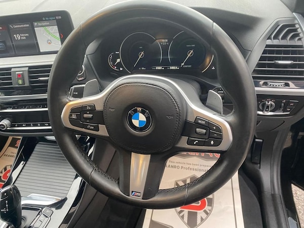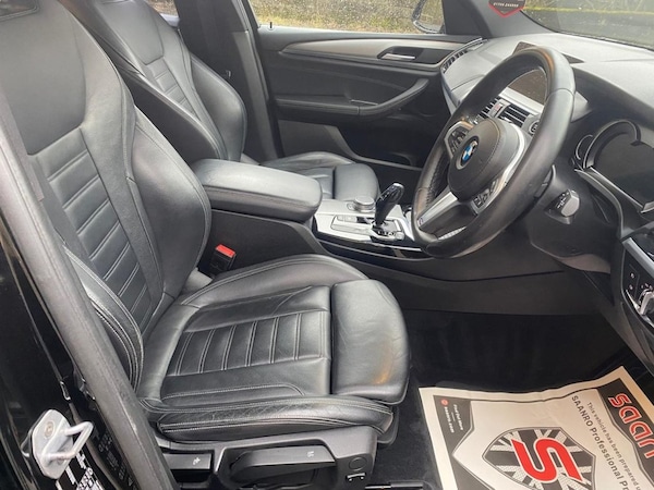 DUE IN NEXT WEEK HERE WE HAVE A NICE BMW X3 2.0D M SPORT,IN STUNNING BLACK SAPPHIRE,61K MILES FROM NEW,19" ALLOYS,BMW PRO NAV,ADAPTIVE LED HEADLIGHTS,FULL BLACK UPGRADED SEATS,HEATED SEATS,AIR CON,WINTER PK,REV CAMERA,MUST BE SEEN AUTO TRADER HIGHLY RATED FOR OUR CUSTOMER SERVICE 2024 & 2025 - Finance and nationwide delivery can also be arranged. For more information or to book a viewing and test drive, call our sales team today on or *Please note - sometimes advert information regarding spec and number of keepers is pre populated from an automatic data feed and as such must be disregarded or checked with our sales team. .19in Alloy Wheels - Bi-Colour Ferric Gre, Air Conditioning - Automatic, Adaptive LED Headlights with High-Beam A, BMW Professional Navigation with 10.25in, Bluetooth Hands Free with USB Audio Inte, 12V Power Socket in Front Centre Console, 19in Alloy Wheels - Bi-Colour Ferric Grey M Light Double Spoke Style 698 M with Run-Flat Tyres, Active Guard, Adaptive LED Headlights with High-Beam Assistant, Air Conditioning - Automatic, Airbags, Alarm System - Thatcham 1 with Remote Control and Engine Immobiliser, Ambient Lighting, Armrest - Front with Storage Compartment, Armrest - Rear Centre with Two Cupholders, Attentiveness Assistant, BMW ConnectedDrive Online Services, BMW Emergency Call, BMW Professional Navigation with 10.25in Touch Display, BMW TeleServices, Battery Safety Cut Off, Bluetooth Hands Free with USB Audio Interface, Bottle Holders Integrated into Door Trim Storage Compartments - Front - up to 1 litre - Rear - Up to 750ml, Brake Pad Wear Indicator - Front and Rear, Bumper System Front and Rear - Replaceable Deformation Elements for Impacts Up to 9mph, Central Locking Switch - Doors - Fuel Filler Cap - Luggage Compartment, Check Control Warning System for Monitoring of Lights and Door-Luggage Compartment Open Warning, Child Locking System - Rear Doors, Child Seat ISOFIX Attachment - Rear, Condition Based Service, Crash Sensor, Cruise Control with Brake and Speed Limiting Function, Cup Holders - Front - Two with Removable Oddments Tray-Lid, DAB Digital Radio, DSC - Dynamic Stability Control Plus, Direction Indicator - Side Repeaters - Integrated in Exterior Mirrors, Door Sill Finishers - Front - High-Gloss Black with BMW Designation, Drive Performance Control with ECO PRO - Comfort and Sport Modes, Dynamic Brake Lights, EPS - Electric Power Steering, Electric Windows - Front and Rear with Open-Close Fingertip Control - Anti-Trap Facility and Comfort Closing Function, Electro Mechanical Parking Brake, Exhaust Tailpipe - Chrome - Dual - Round - Split - Left and Right, Exterior B Pillar - Black, Exterior Mirrors Electrically Adjustable, Exterior Parts in Body Colour, Exterior Trim - High-Gloss Shadowline, First Aid Kit and Warning Triangle, Gear Knob - Leather, Grab Handles - Integrated in Roof Lining x4, Headlining - Anthracite, Heat Protection Glazing with Green Tint, Heated Windscreen Washer Jets, High Level Third Brake Light Using LED Technology, Incorrect Fuelling Protection System, Instrument Cluster, Interior Lighting, Interior Rear-View Mirror