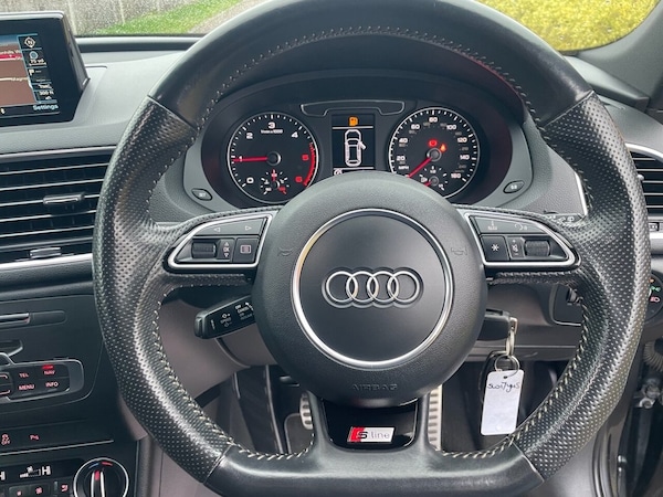 We are excited to offer for sale this imacculate and stunning Audi Q3 SLine Black Edition 2 litre tdi Quattro with automatic transmission. We have recently purchased this vehicle from the previous keeper who has downgraded to just one car for the time being. It is supplied with 12 months MOT with no advisories, 2 x keys and service history and we have also replaced the rear brake discs and brake pads. No expense has been spared in maintaining this vehicle. This beauty also has the upgraded Bose sound system. First to see will buy! It also comes with a 3 months/3,000 miles warranty. We welcome AA or RAC inspections and also part exchanges, call us for a price on your vehicle, we give very fair prices. If you would like to arrange a test drive or a live video, please contact Tracey on and she will be more than happy to assist you with your requirements. Delivery can be arranged. *** CHECK OUT OUR REVIEWS AND BUY WITH ADDED CONFIDENCE*** Please check out our website, for other Audis which we have in stock..6.5in Colour Display Screen, S Line Badges on Front Wings, LED Interior Light Package, Electromechanical Power Steering - Speed, BOSE Surround Sound System, Audi Hill Hold Assist, 4-Way Electric Lumbar Support for Front Seats, 6.5in Colour Display Screen, AMI - Audi Music Interface, Anti Theft Locking Wheel Bolts, Anti-Theft Alarm, Audi Drive Select, Audi Parking System Plus, Auto-Dimming Rear-View Mirror, BOSE Surround Sound System, Black Roof Rails, Black Styling Pack with Black Roof Rails, Bluetooth Interface, Chrome-Plated Trims for Exhaust Tailpipes, Cloth Headlining in Black, Concert Radio, Cruise Control, DAB Digital Radio, Door Mirrors - Heated-Electrically Adjustable-Folding, Driver - Front Passenger - Front Side and Head Airbag System, Drivers Information System - DIS - 3.5in - Monochrome Display, Dual-Zone Electronic Climate Control, ESC - Electronic Stabilisation Control inc ABS - ASR and EDL, Electric Windows - Front, Electromechanical Parking Brake, Electromechanical Power Steering - Speed-Sensitive Provides a Precise Steering Feel at High Speeds and Excellent Assistance when Parking., Extendable Luggage Compartment Cover, First Aid Kit and Warning Triangle, Flat-Bottomed 3-Spoke Perforated Leather-Trimmed Multifunction Steering Wheel-Contrast Stitching, Front Centre Armrest, Front Lip and Rear Diffuser in Full Paint Finish - Diffuser Insert Painted Platinum Grey, Front and Rear Floor Mats, Front and Rear Fog Lights, Full Body-colour Paint Finish with Front and Rear Bumpers - Wheel Arch Trims and Lower Door Trims in Gloss Black, Gear Knob - Aluminium, Gloss Black Door Mirrors, Gloss Black Rear Spoiler, ISOFIX Child Seat Mounting and Top Tether, Inlays - Piano Finish - Black, LED Headlights with LED Rear Lights and Dynamic Rear Indicators, LED Interior Light Package, Light and Rain Sensor, Manual Seat Adjustment, Pedals in Stainless Steel, Power Operated Tailgate, Privacy Glass, Remote Central Locking, Reversible Luggage Compartment Floor, S Line Badges on Front Wings, S Line Sports Suspension, Satellite Navigation System - SD Card Based, Seat Belt Monitoring, Secondary Collision Brake Assist, Space Saver Spare Wheel, Split-Folding Rear Seats, Stainless Steel Loading Sill Protector, Steering Wheel - Height and Reach Adjustable, Tool Kit and Car Jack, Towbar Preparation, Tyre Pressure Loss Indicator, Voice Control System, Windscreen with Acoustic Glazing