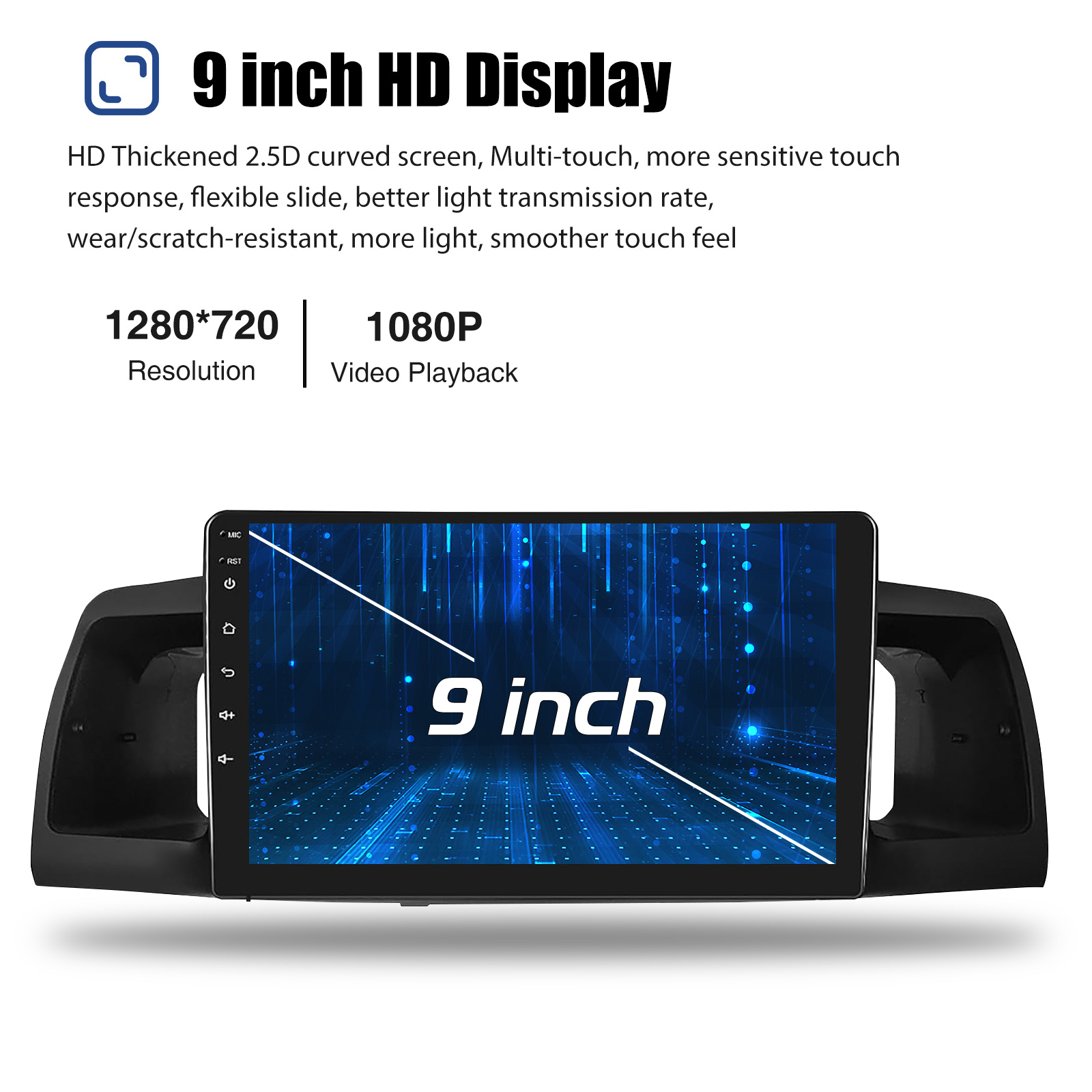 Android car radio with 9" 1280*720 2.5D HD capacitive touch screen, 4GB