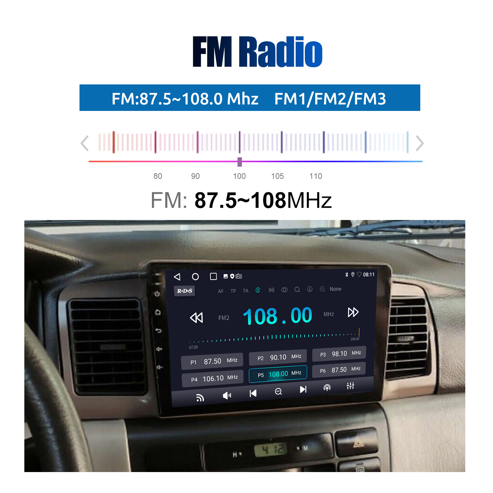RDS/FM Radio & Bluetooth & ASP Sound Setting: Supports Bluetooth 4.1, with built-in microphone so you can make hands-free calls while driving. Support access to phone book, music playback interface, etc. RDS supported. You can save 18 FM radio stations. Built-in ASP chip. Supports 32-band EQ setting, which can be adjusted according to your personal preference. Which is very similar to your original sound. 4 x 45W amplifier, surround sound and subwoofer output