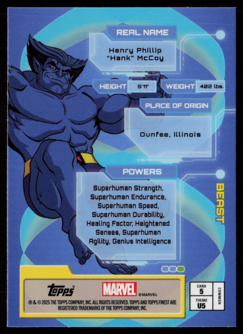 | BEAST 2025 TOPPS FINEST X-MEN '97 ULTIMATES COMMON #5 | ||||||||||||||