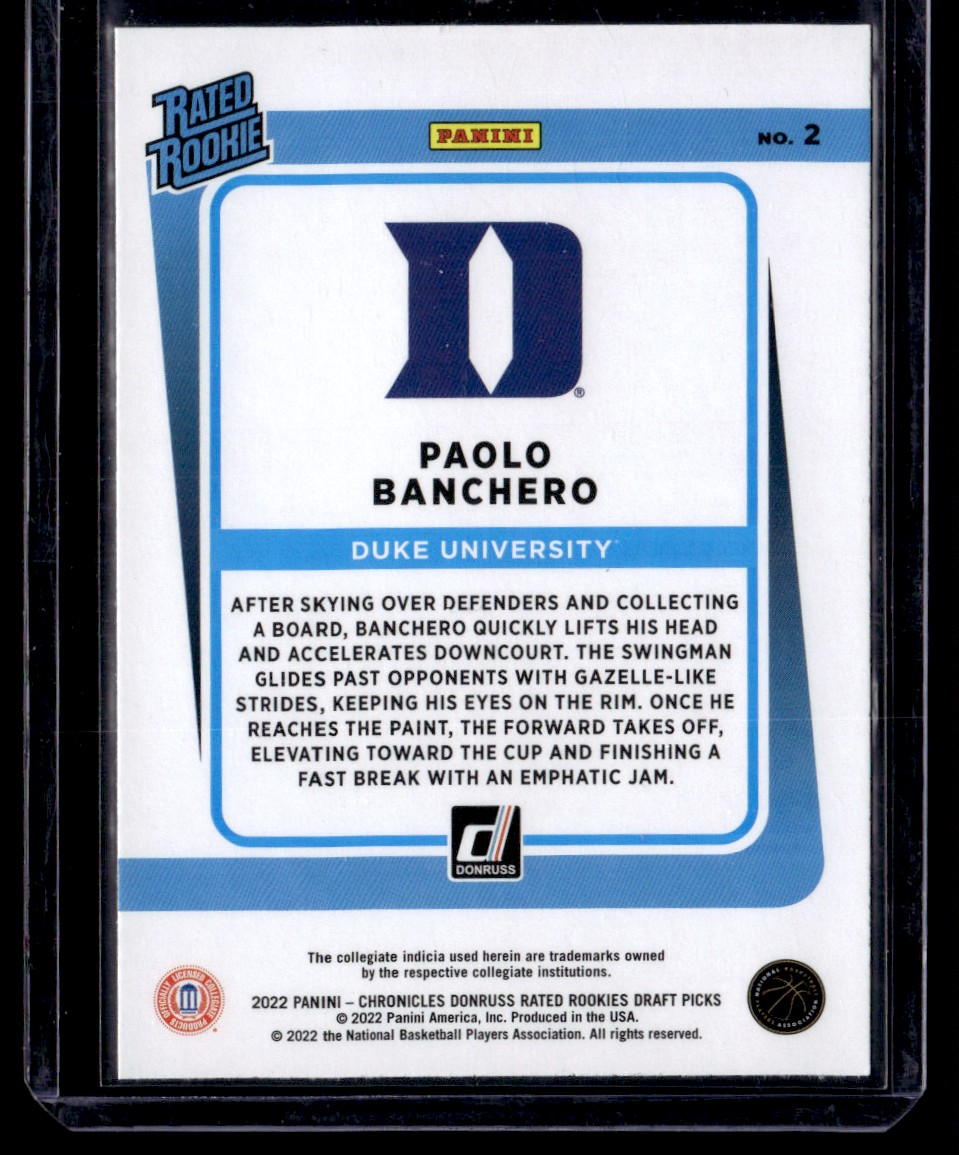 | PAOLO BANCHERO 2022-23 PANINI CHRONICLES DRAFT PICKS DONRUSS RATED ROOKIE RC | ||||||||||||||||||