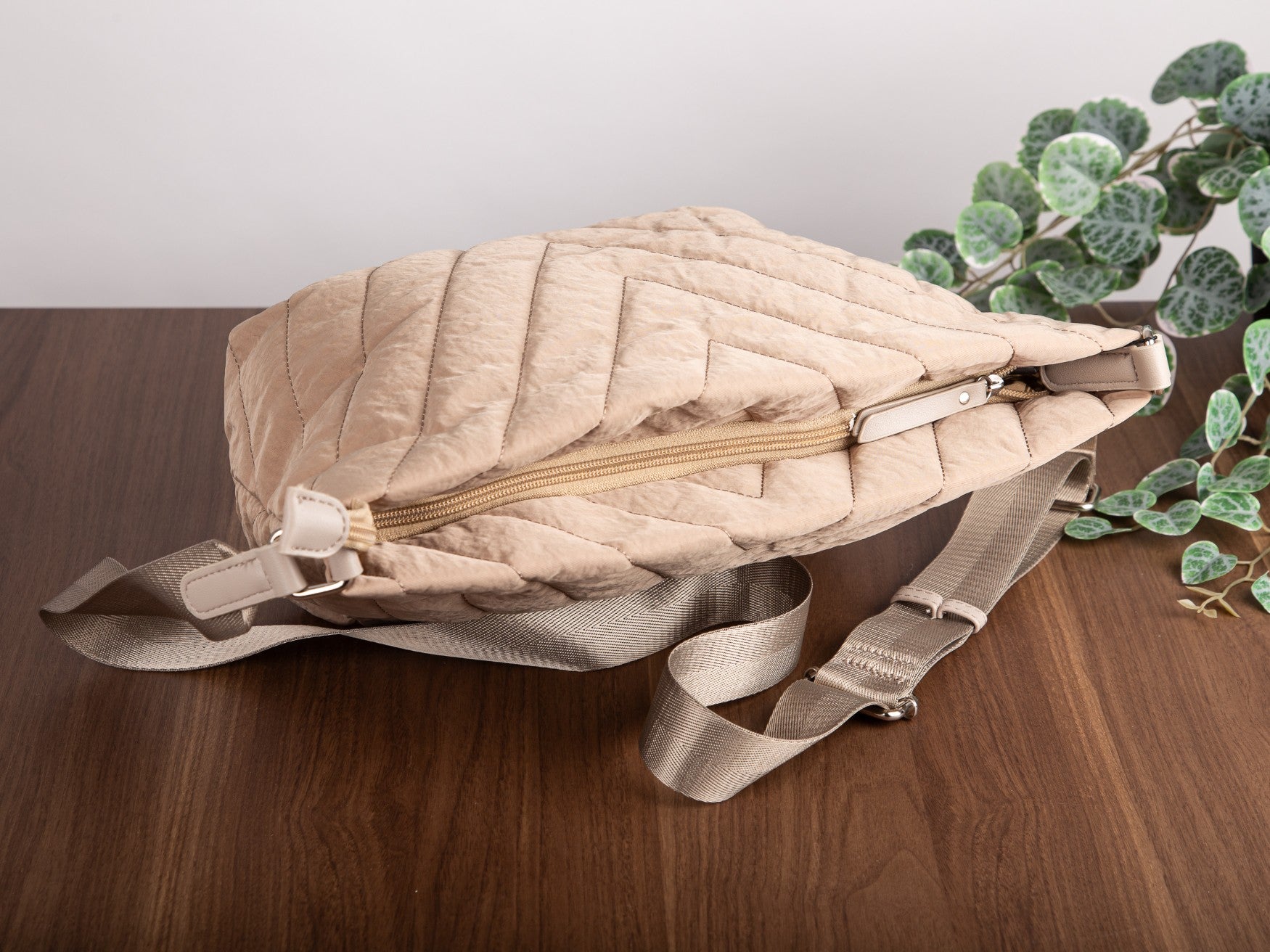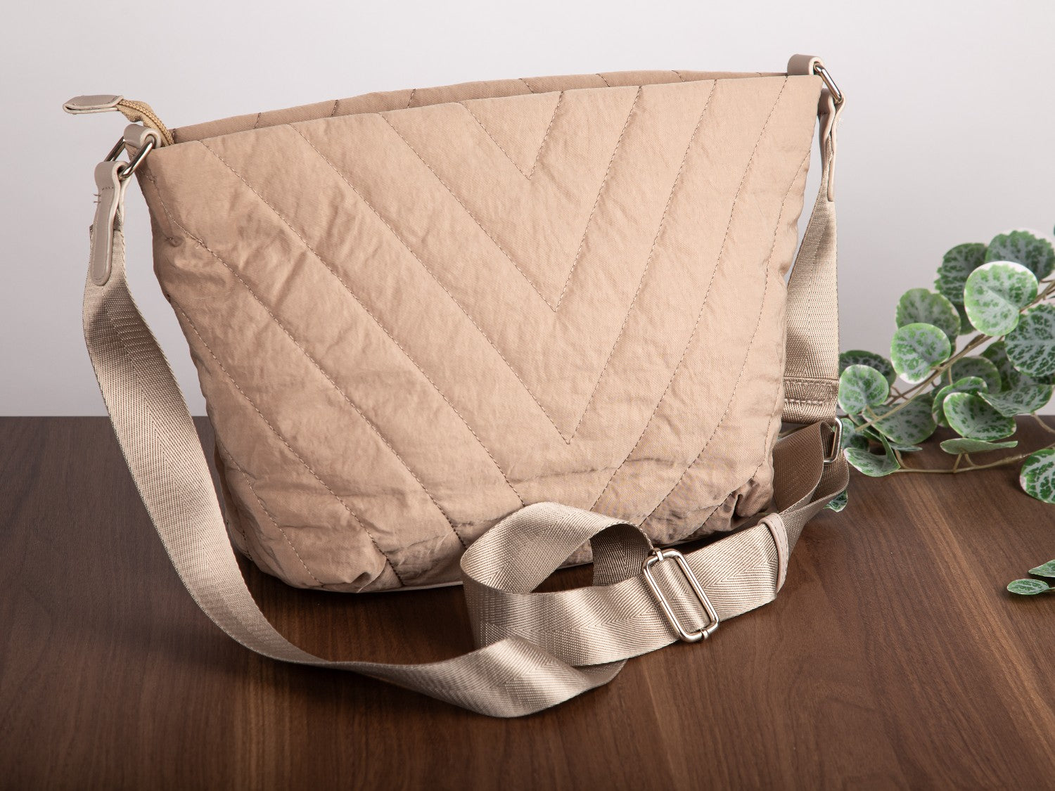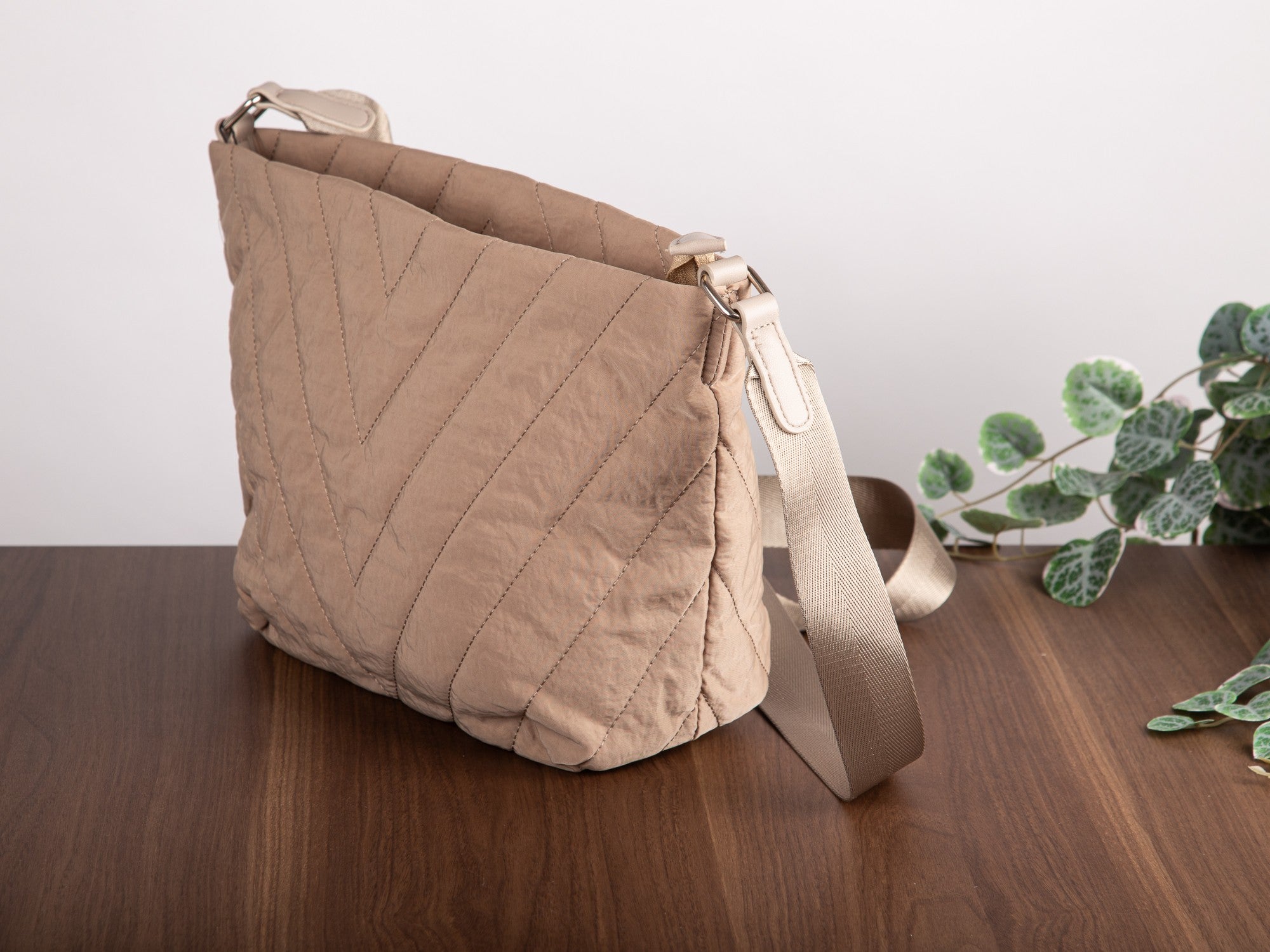 Beige, gesteppte Damen-Schultertasche der Marke Jennifer Jones in mittlerer Größe für den täglichen Gebrauch.