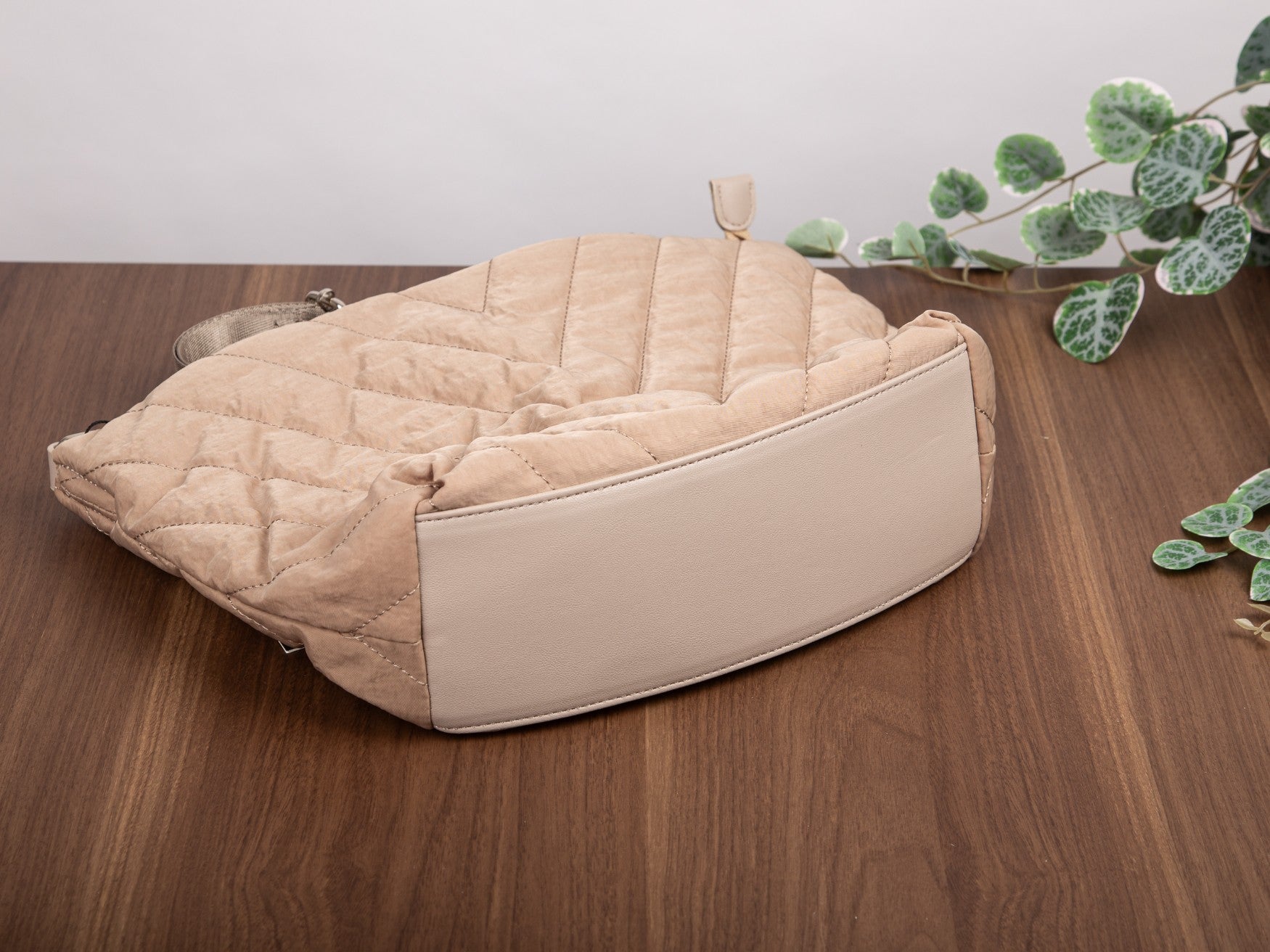 - Gesteppte Oberfläche mit geometrischem V-Muster (Chevron)