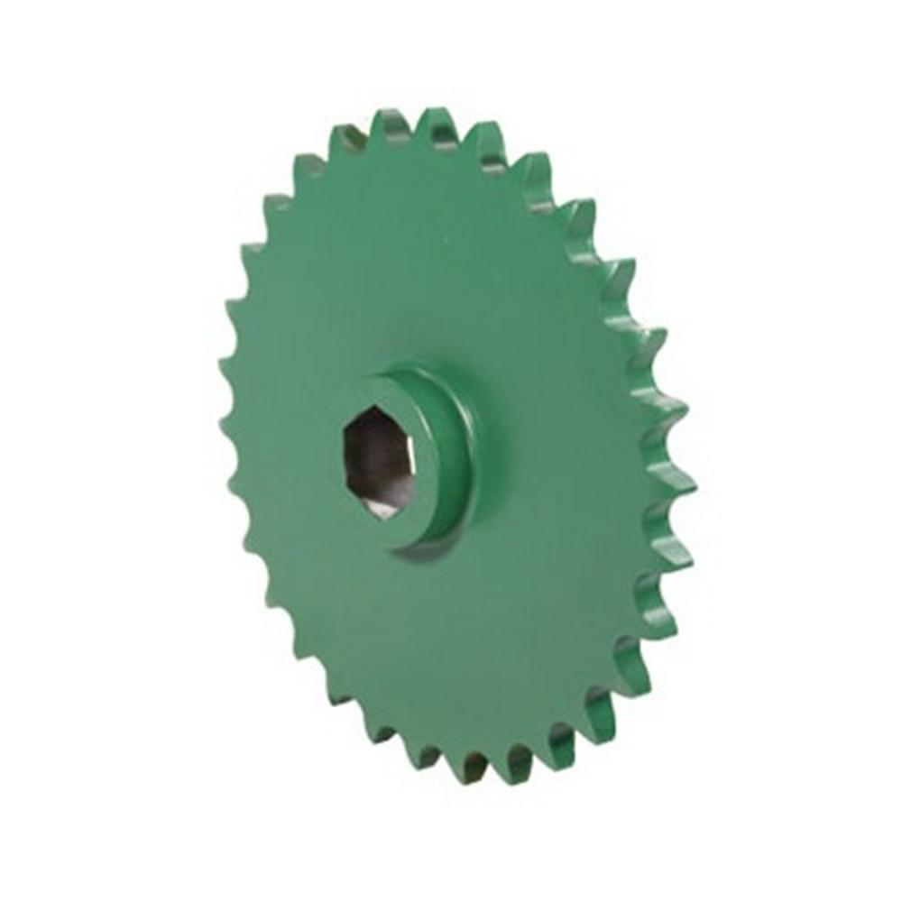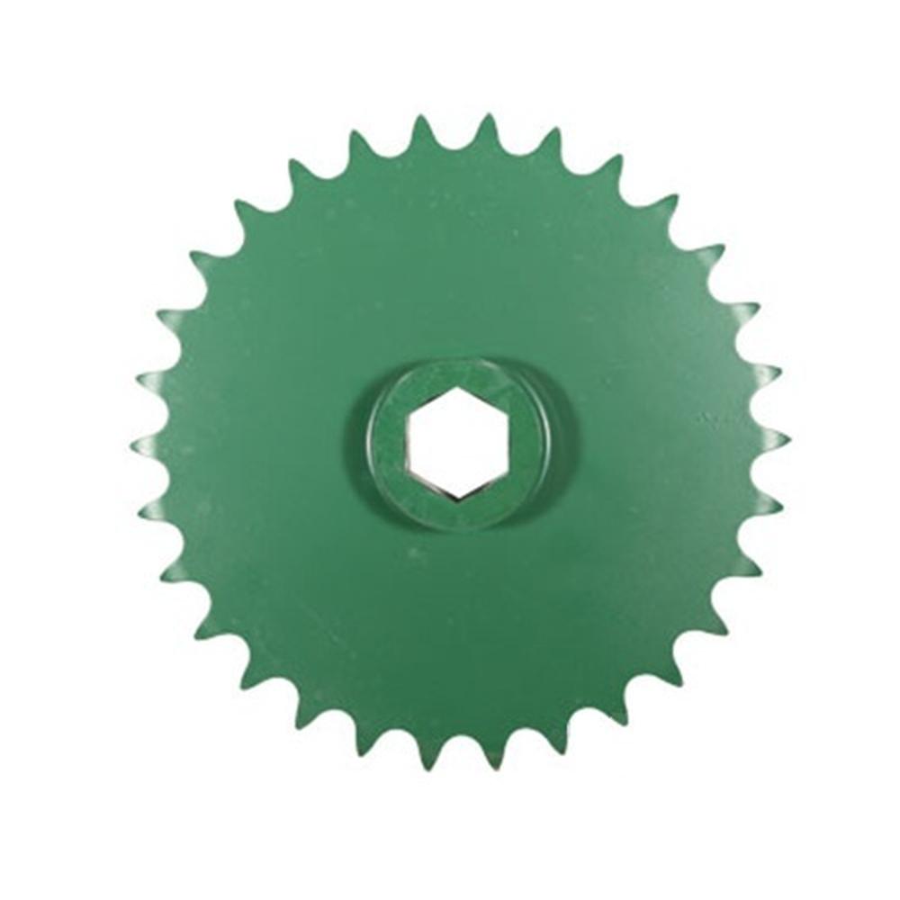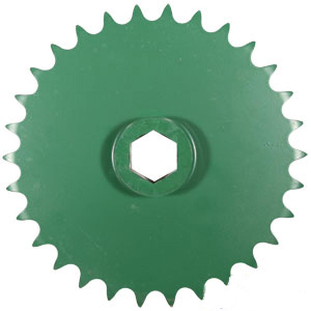 This 30-tooth, #80 chain drive sprocket is used in the upper drive roller assembly of Fits John Deere round balers, transmitting power through the baler's chain drive system to keep crop moving smoothly through the baling chamber. It is a direct aftermarket replacement Fits John Deere OEM part number AE74596 and its superseding number AFH207883.