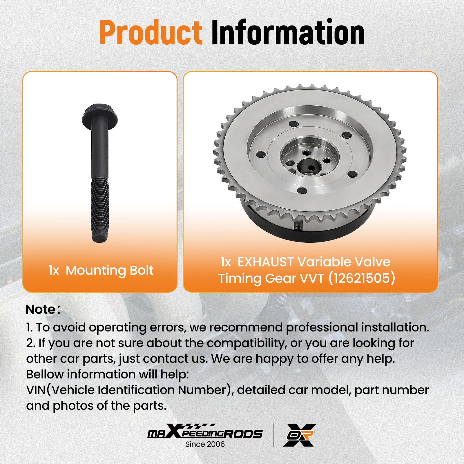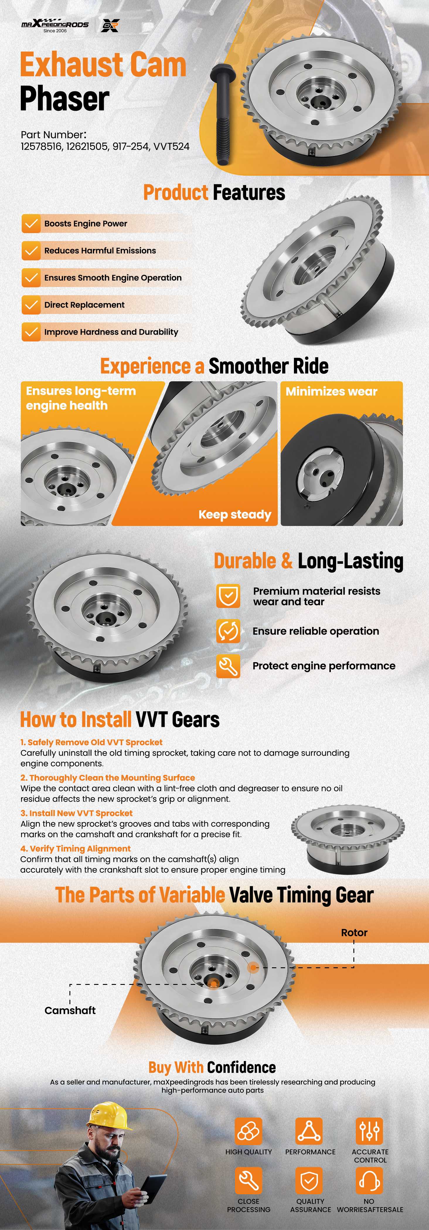 【ENHANCE FUEL ECONOMY】Camshaft regulator gear enables precise valve adjustment in response to changes in engine load and speed. This helps maximize fuel utilization and improve fuel economy.