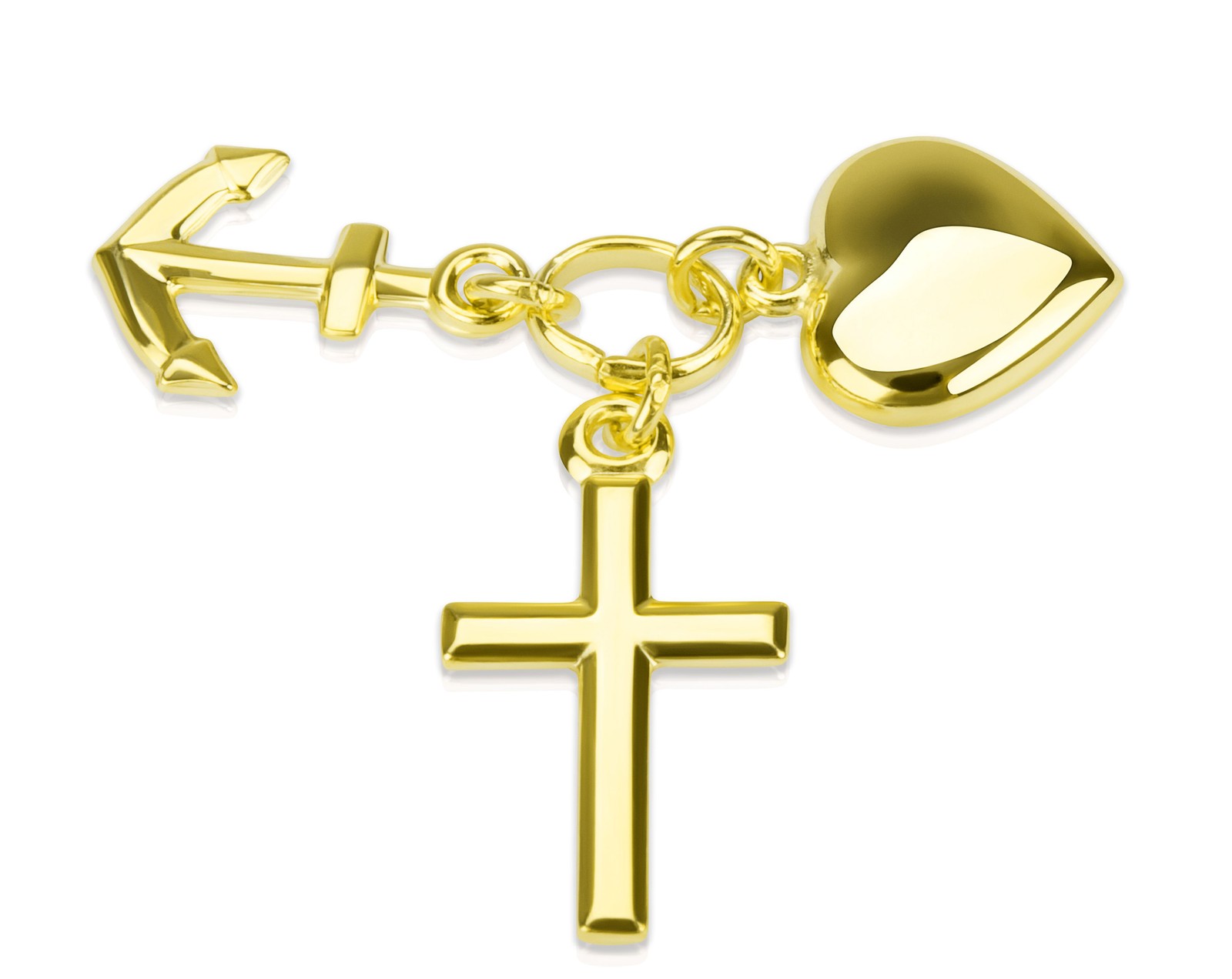 This highly glossy -polished three -part symbolizes faith, love and hope and expresses this in the form of a cross, heart and an anchor. The noble charm trailers are open to all combination options and can be presented as a bracelet on the wrist at any occasion or decorate the neck as a chain. The high -gloss polished three partial charms should not be missing in any jewelry collection, as they come into their own for every outfit and attract everyone's attention.
