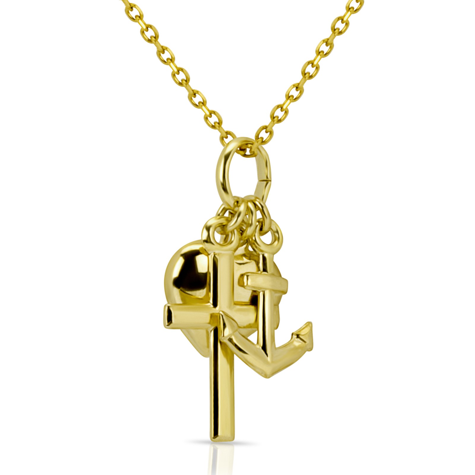 This highly glossy -polished three -part symbolizes faith, love and hope and expresses this in the form of a cross, heart and an anchor. The noble pendants are open to all combination options and can decorate the neck on any occasion as a chain. The high -gloss polished three -part trailers should not be missing in any jewelry collection, since they come into their own for every outfit and attract everyone's attention. Due to the yellow gold coloring, the charming trailers leave a lasting impression. The trailer is ideal as a anniversary gift for her and her, as a couple gift in the form of a small courtesy or for special bonds, for example as a mother daughter. The 585 gold polished chain pendant with 14 karat is the perfect love proof for women and men. Faith, love and hope harmonize in this noble gold piece and are an irreplaceable combination with the simple but unique design that expresses a unique bond. The trailer is therefore the perfect way to say "I love you". The size of the trailer is approx. 22 mm x 16 mm. Thanks to the weight of 1.09 grams, the beautiful pendant in real gold also hardly takes any space and lies gently on the wrist or around the neck. The high -quality pendant is truly a sign of love and gives your loved ones a lot of happiness and joy. The lucky charm is therefore ideal for everyone who is looking for the right gift. Our product is characterized by high -quality jewelry quality and inexpensive processing.