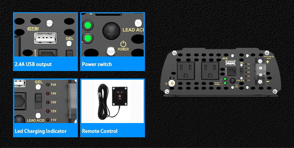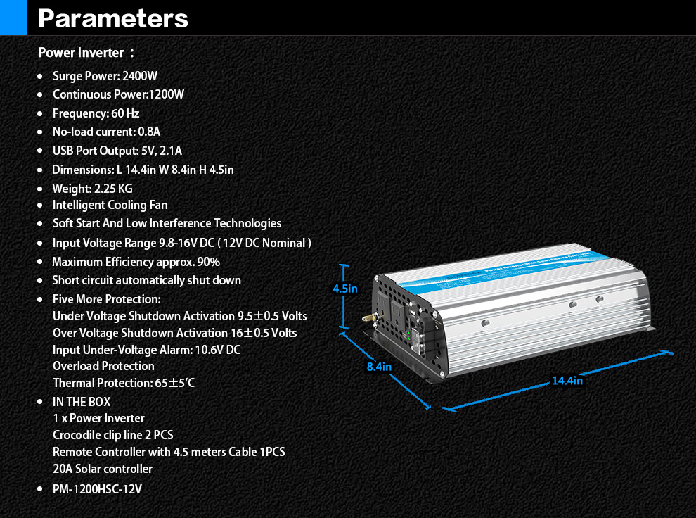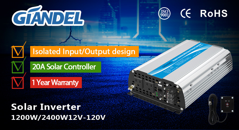 Power Inverter 1200W 12V-110V~120V with 20A Solar Controlle US Transistors