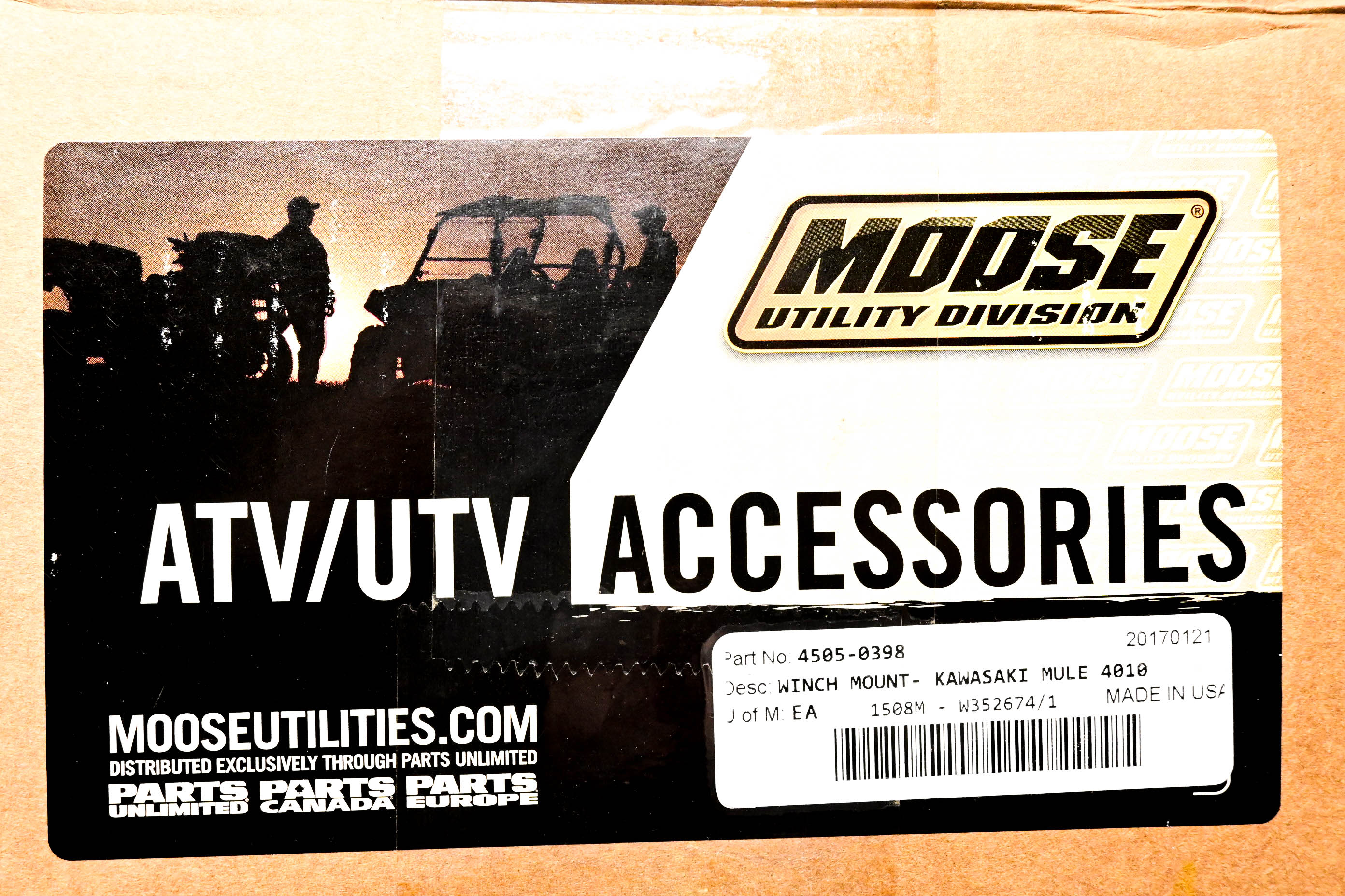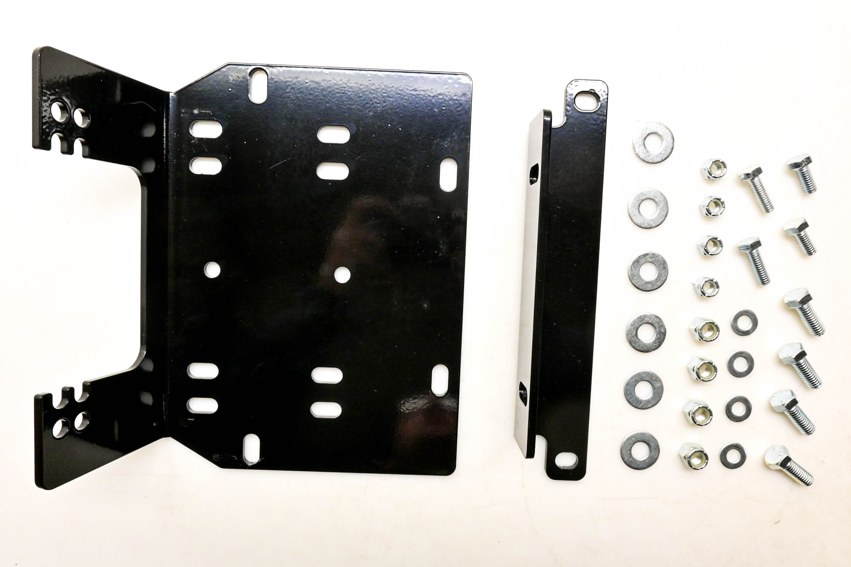 Kawasaki Mule Winch Mount Kit is new and in good condition, in original packaging. Shows signs of shelf wear.