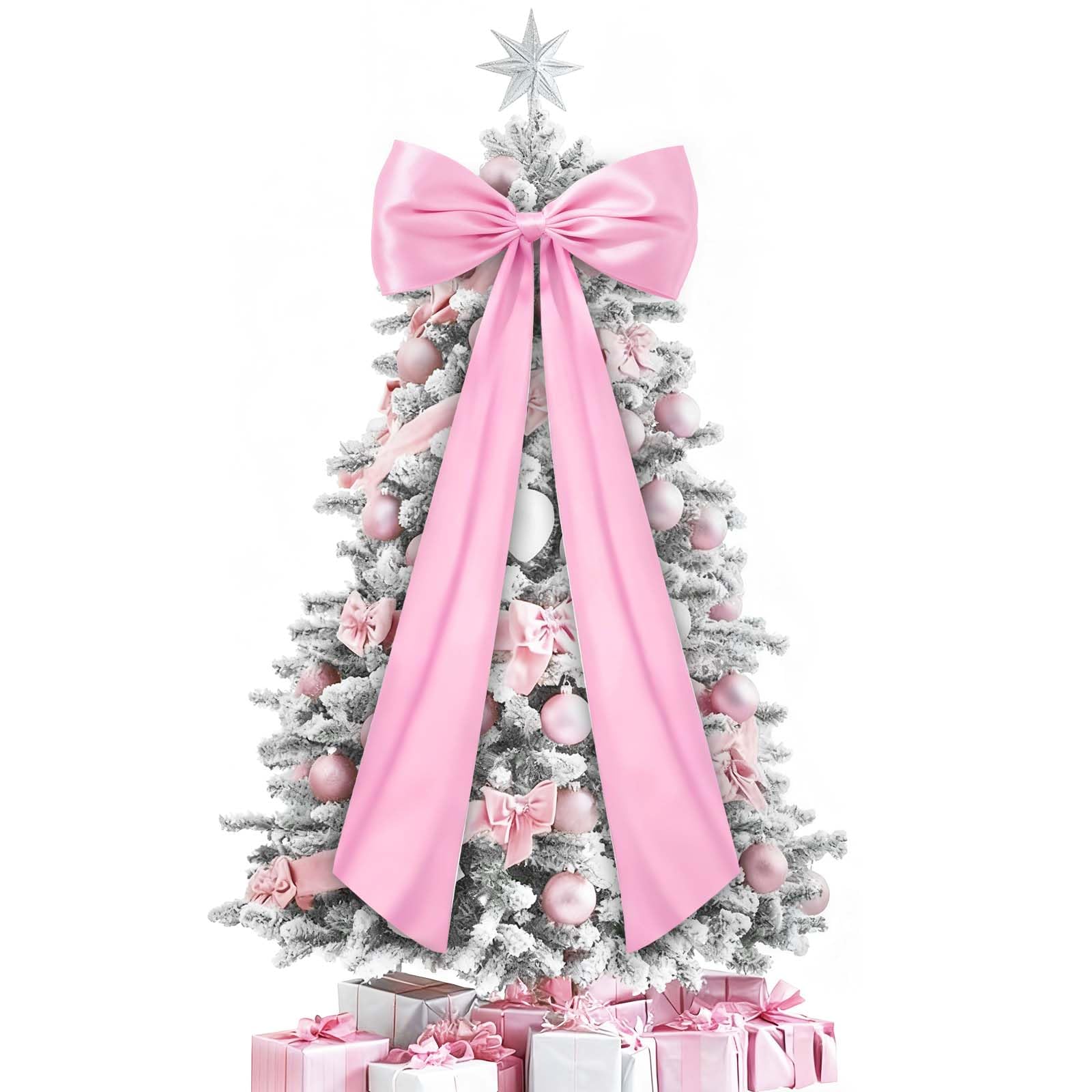 Christmas Extra Large Tree Topper Bow, 20 x 47 Inches Pink Stain Bow Christmas Tree Topper Decorations Giant Xmas Wreath Bow for Home Wall Door Party Holiday Birthday Wedding Decor