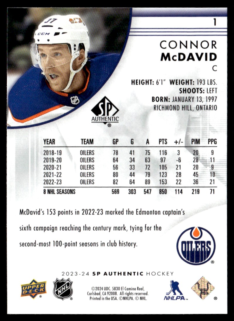 | CONNOR MCDAVID 2023-24 SP AUTHENTIC EDMONTON OILERS #1 | ||||||||||||||||