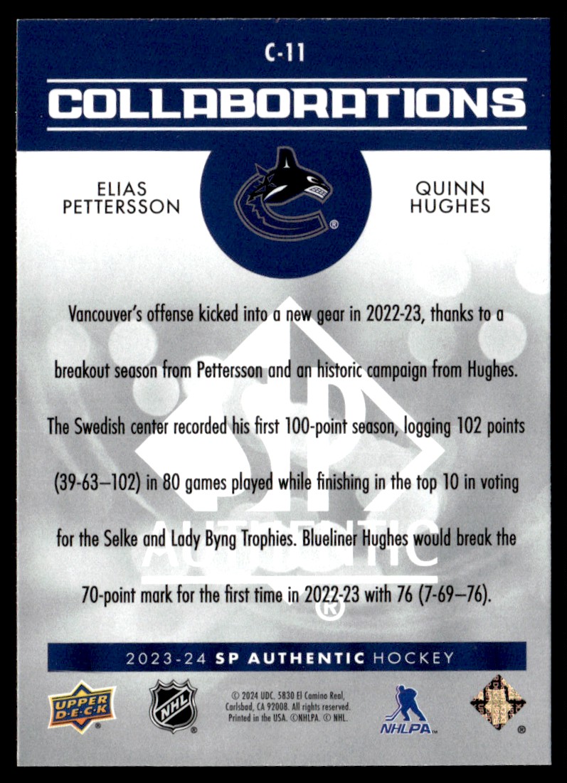 | ELIAS PETTERSSON / QUINN HUGHES 2023-24 SP AUTHENTIC COLLABORATIONS VANCOUVER | ||||||||||||||||