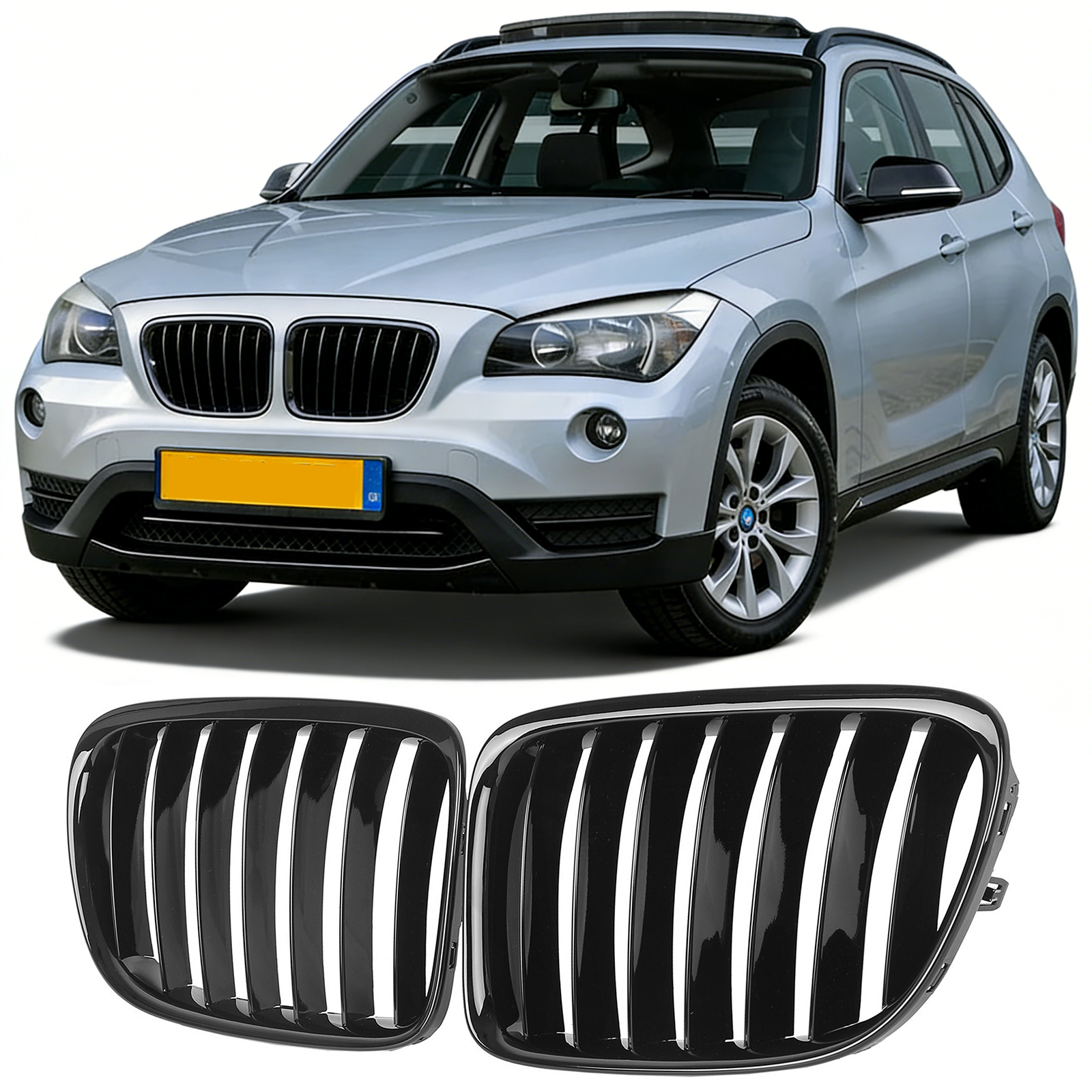 NIEREN GRILL ZIERGITTER PASSEND FÜR BMW X1 E84 SUV EINZELSTEG GLÄZEND SCHWARZ