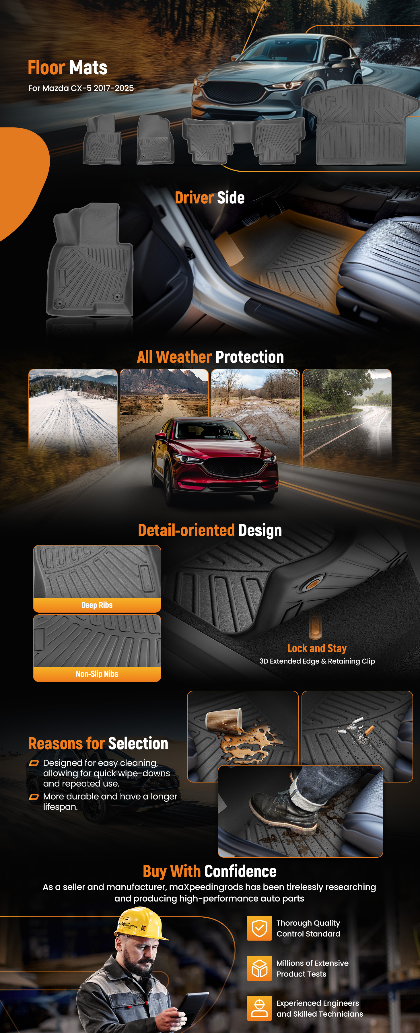 4PCS Floor Mats & Cargo Liner For Mazda CX-5 2017 2018 - 2024 All Weather TPE