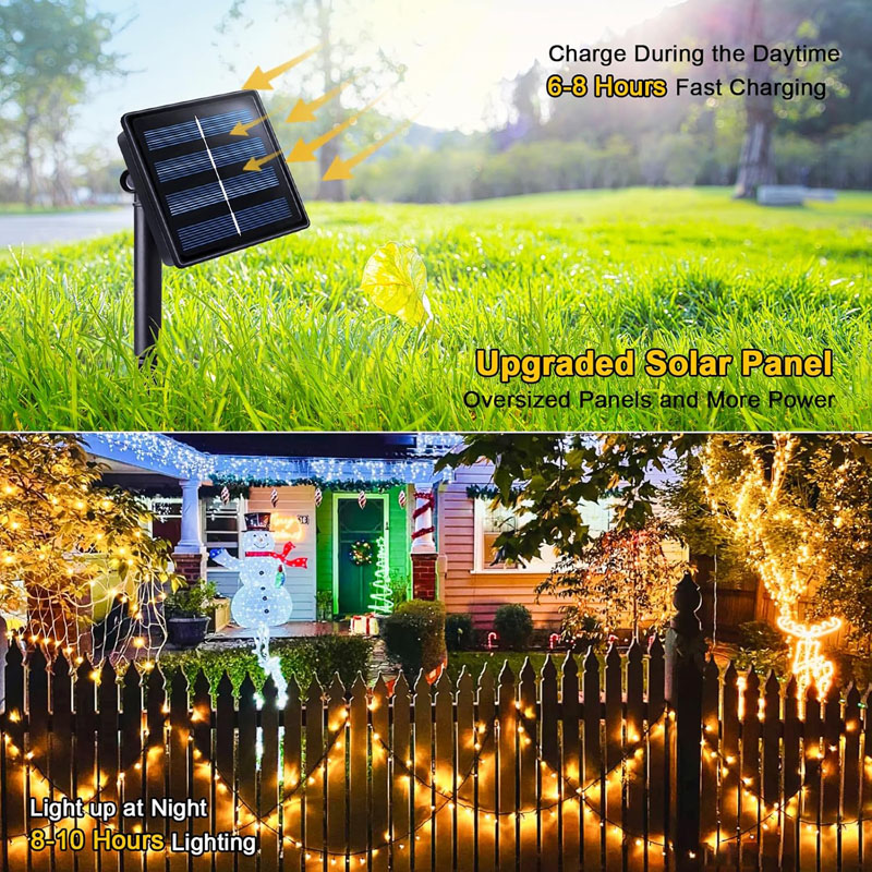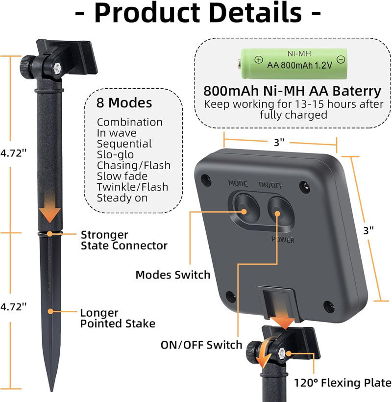 No wiring needed, powered by solar energy, Solar panels absorb sunlight can rotate 360 degrees. Solar panels can be adjusted.
