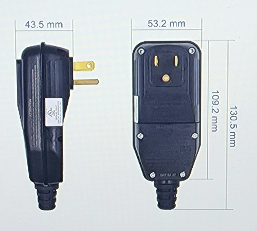 Black Shell/White Button 15A, 125V 3-Wire Right Angle GFCI Plug