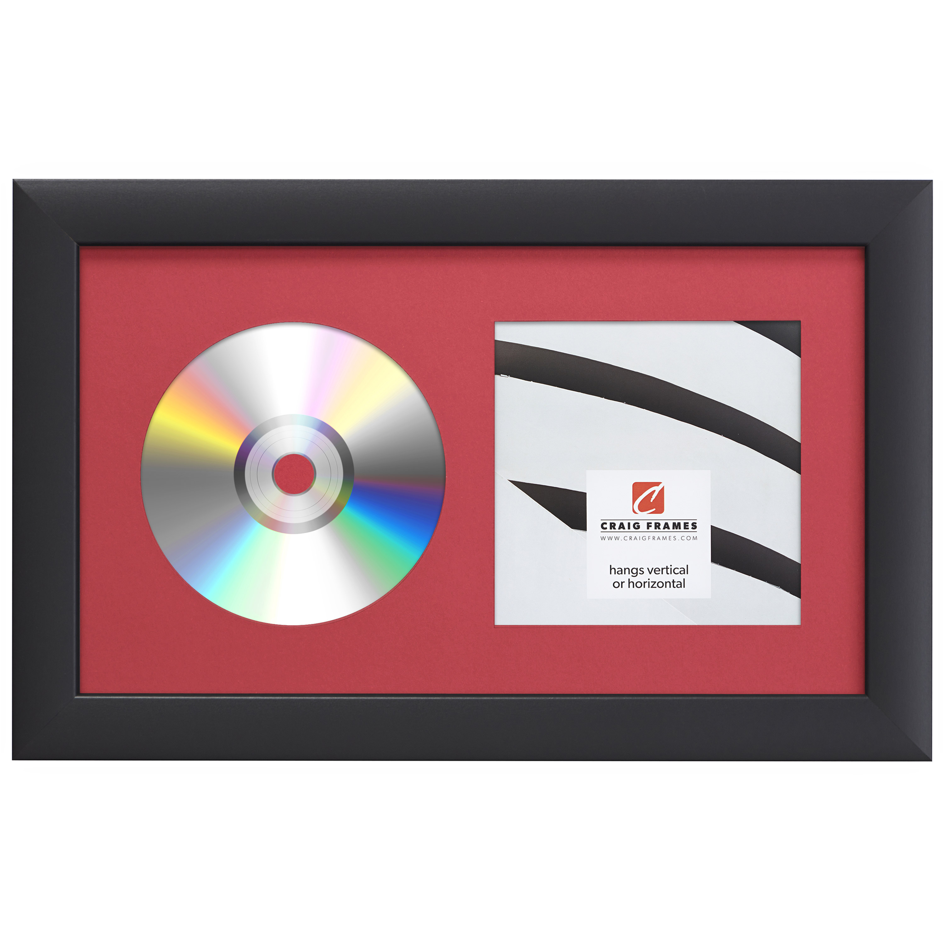 Craig Frames Complete 7x12 CD Display Black Frame with Glass, Red Matting