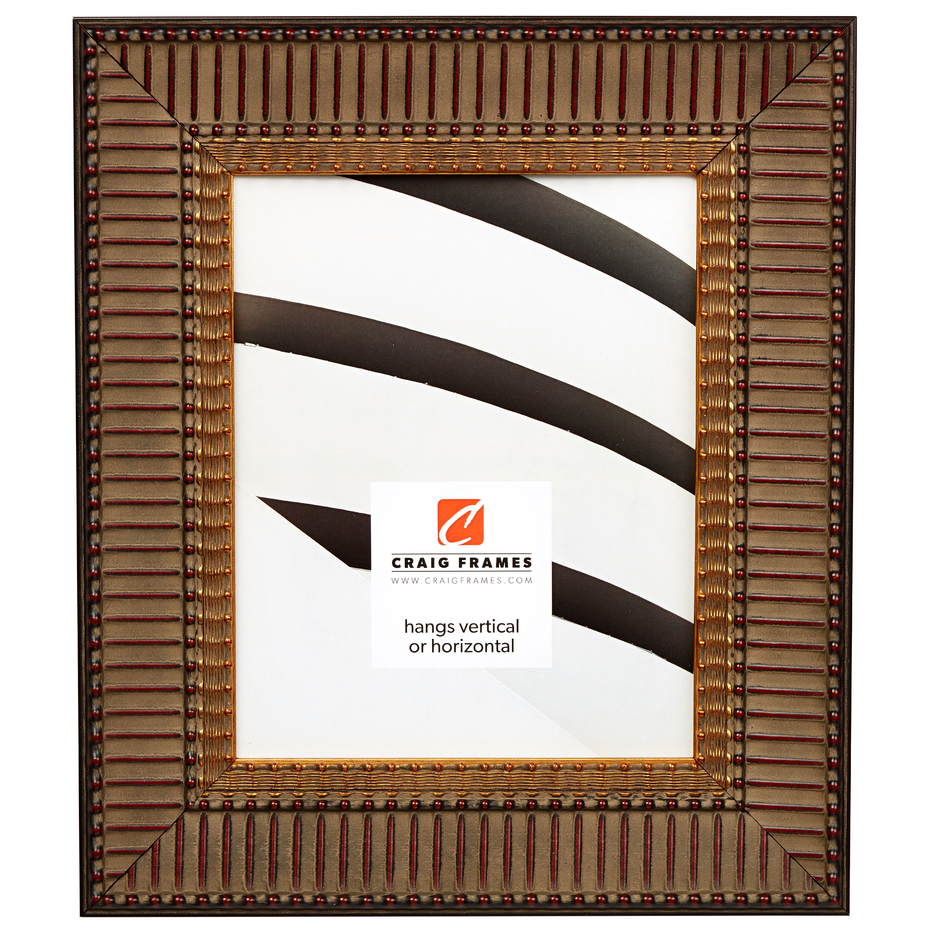 This robust antique mahogany picture frame is characterized by a ribbed profile trimmed with linear gold ornament. The 2½″ wide Chapelle picture frame is a bold compliment to a wide range of decor styles. At the heart of this moulding is a solid wood core—capped with a polished composite wrap, finished in Arcadian Mahogany. The stoutness of the Chapelle picture frame will elevate your room decor.