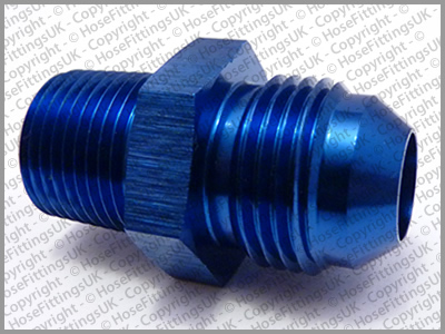 AN -10 (AN10) flare to 1/2 NPT straight adapter, male to male union for adapting from AN to NPT or NPT to AN. Other related fittings, adapters and suitable hose for this item are available in our eBay Shop.