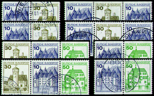 BRD Bund Zusammendrucke W63-W70 Burgen und Schlösser gestempelt
