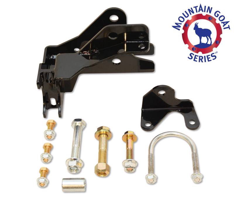The Mountain Goat Series™ front track bar relocation bracket is a necessary upgrade on any Jeep© JK Wrangler that is lifted 3.0" or more. Our front track bar relocation bracket is designed for lift heights from 3.0"-4.5" and can be used on lifts up to 6.0" if combined with an adjustable front track bar like our Part# JK-117.