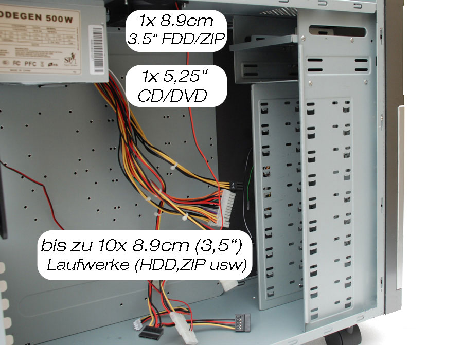 Laufwerkschacht intern: 10x 8.9cm / 3.5" HDD/ZIP Laufwerke