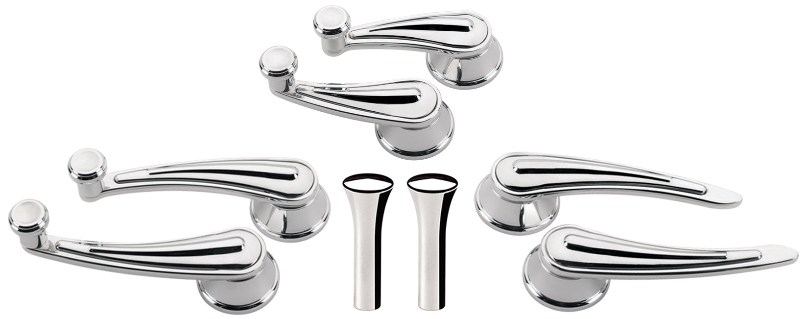 Dress up the door panels of your 1948 & Earlier GM Car with our beautiful precision machined 6061-T6 Billet Polished Aluminum Rail Door Handles, Window Cranks, Vent Window Cranks, & Door Lock Knobs. The polished billet rail door handles, window cranks, & Vent Window Cranks are fully adjustable to any angle & feature steel splines & two set screws for a easy & secure installation. The polished billet aluminum door lock knobs are easy to install & feature a mirror like polished finish. This kit is shipped complete and includes all the necessary hardware to install the door handles, window cranks, Vent Window Cranks & door lock knobs.