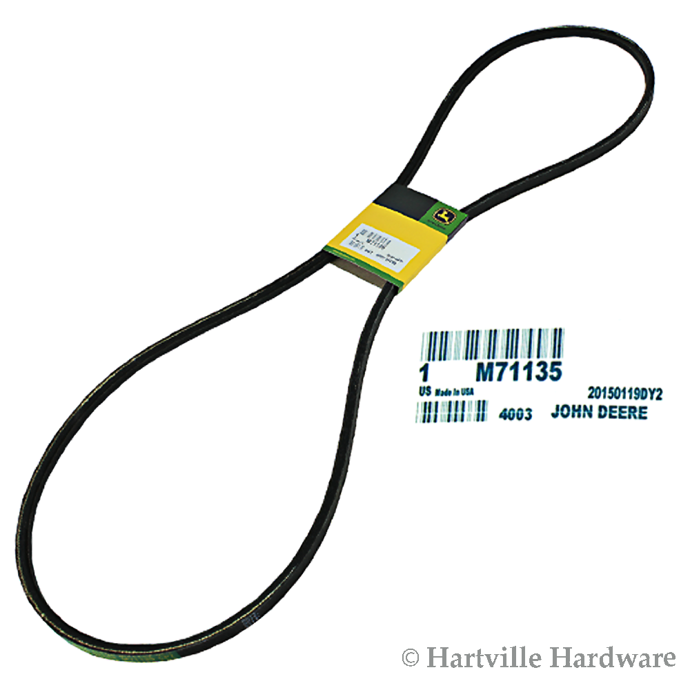 A genuine John Deere #M71135 Traction Drive Belt. Traction drive belts provide power to drive the wheels. John Deere belts contain strong material to prevent stretching and roll over which provides smooth engagement and consistent power. A genuine John Deere Original Equipment (OEM) part.