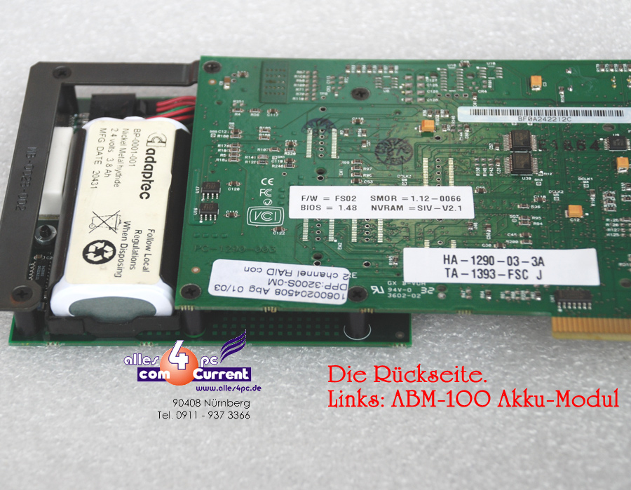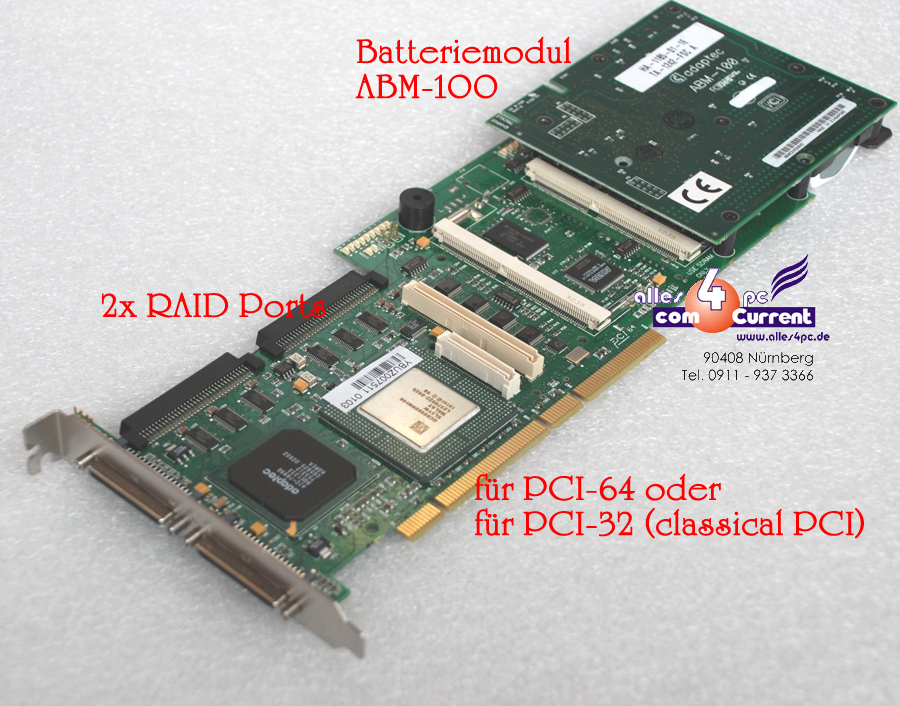 Adaptec SCSI 3200S-0M Ultra160 Raid Controller (3000S series) with a storage protection battery ABM-100