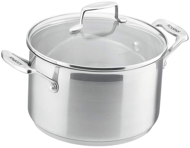 NEW Scanpan Impact S/Steel Covered Dutch Oven 22cm - 4.5LProduct Information This Scanpan Impact Covered Casserole 4.5L is constructed from heavy gauge 18/10 stainless steel and impact bonded to a thick steel-clad base with a 5mm aluminium core that provides even, steady heating on all cooking surfaces, including induction. Scanpan Impact features a stylish two-tone finish, rugged stainless steel handles, and tempered glass lids that let you see the food you're cooking. Key Features:18/10 stainless steel constructionStainless steel surface5mm aluminium core base, clad in stainless steelStainless steel, double riveted handlesDishwasher safe, recommend hand washing10 years warrantyInternal capacity markings and rolled rims for drip-free pouringInduction compatibleSpecifications Construction:18⁄10 stainless steel Surface: Stainless steel Base: 5 mm aluminium core, clad in stainless steel Handles: Stainless steel, double riveted Lid:Tempered glass with coated stainless steel handlesCapacity: 4.5 L Dimension: 22 cm(D) x 13.5 cm(H) Features: Internal capacity markings Oven safe: To 260°C Cleaning/Care:Dishwasher safe, hand washing recommended Origin: China Warranty: 10 years Induction Compatible:Yes