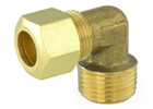 Compression elbow fitting connects a 3/8" OD pipe (or flexible water connector) to 1/2" male threaded outlet or pipe at a 90-degree angle.
