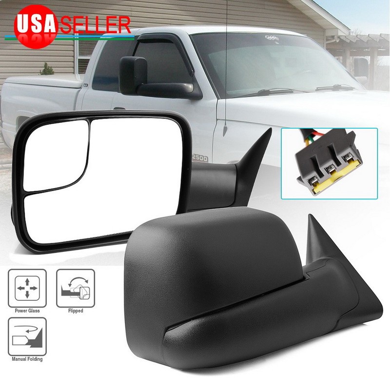 Power Adjusted Glass Tow Mirrors for 94-97 Dodge Ram 1500 2500 3500 Flip-Up Pair