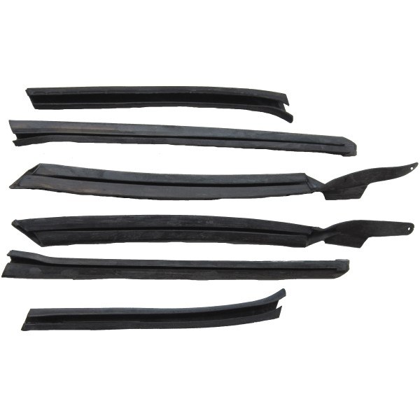 This six (6) piece reproduction Convertible Roof Rail Weatherstrip Set is designed from the original part. These high-quality rubber weatherstrips fit on the roof of the vehicle and work to seal the side windows when the window is fully raised. Fully molded with top quality EPDM rubber over metal cores to ensure durability and proper seal. Designed from original part so it fits correctly.