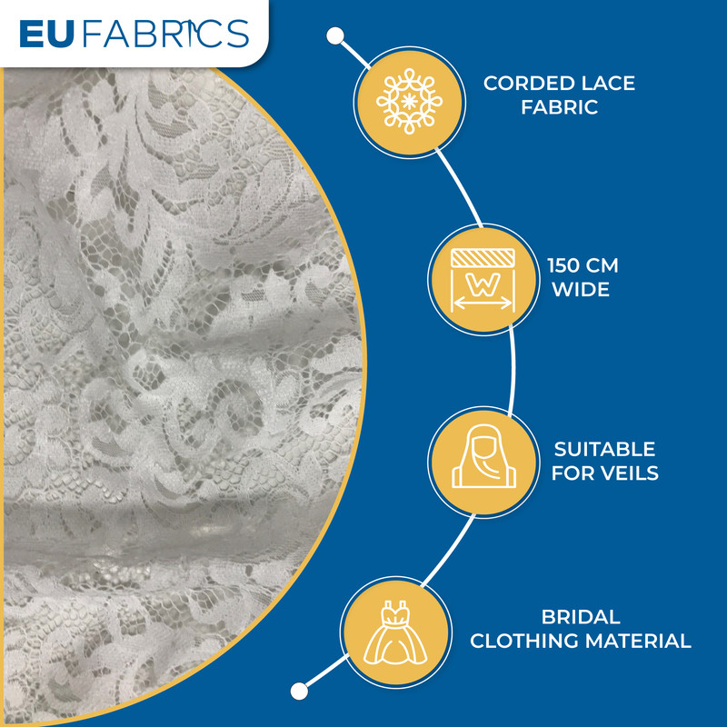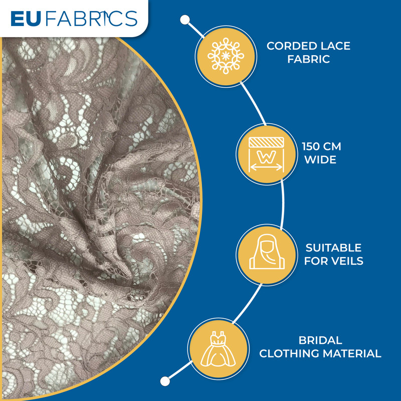 - Corded Lace Fabric: This fabric is made from high-quality corded lace, known for its intricate texture and elegant appearance.