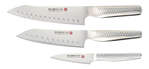 New GLOBAL Ni 3 Piece Kitchen Knife Set Cooks Paring Vegetable Fluted GN-3004